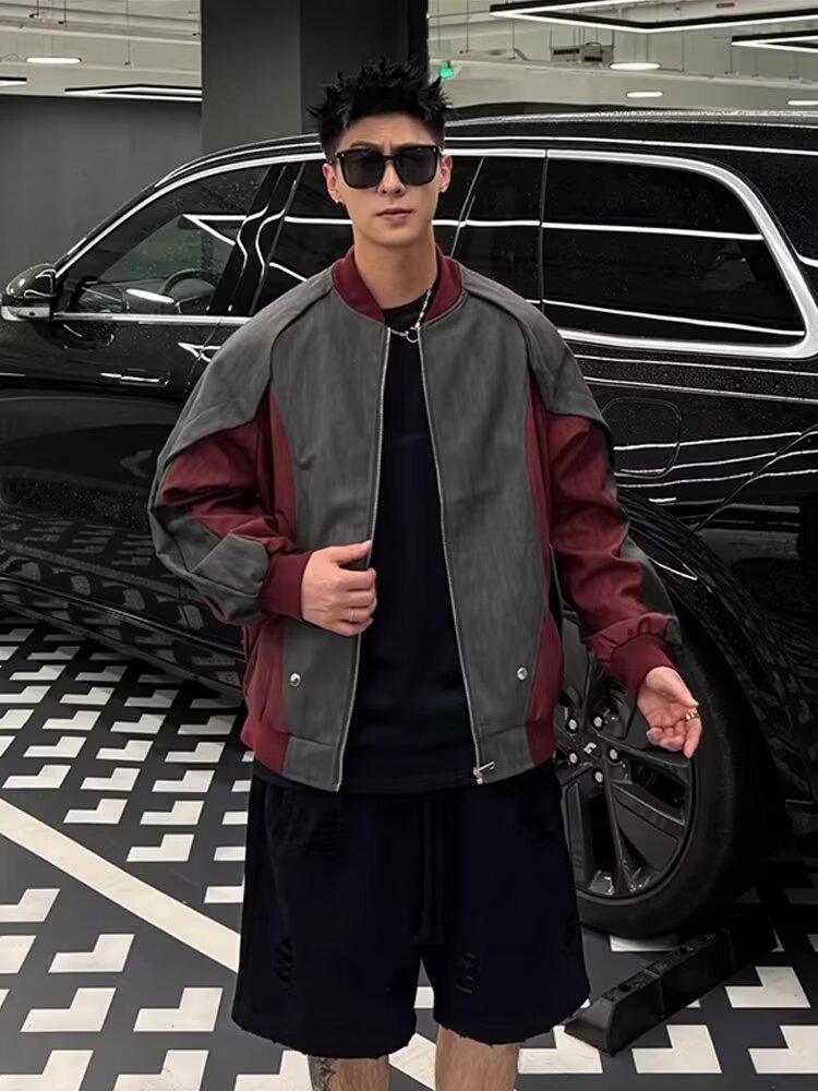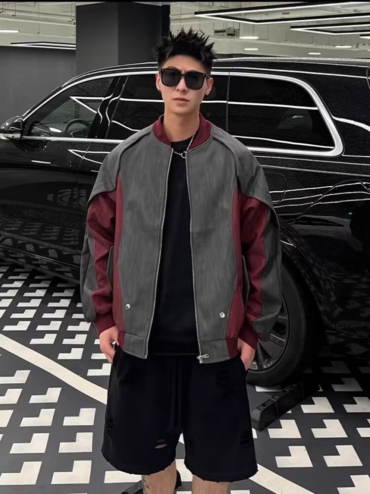 미국 레트로 폭격기 재킷 코트 남자와 여자의 봄과 가을 커플 느슨한 스티칭 지퍼 디자인 센스 야구 세트