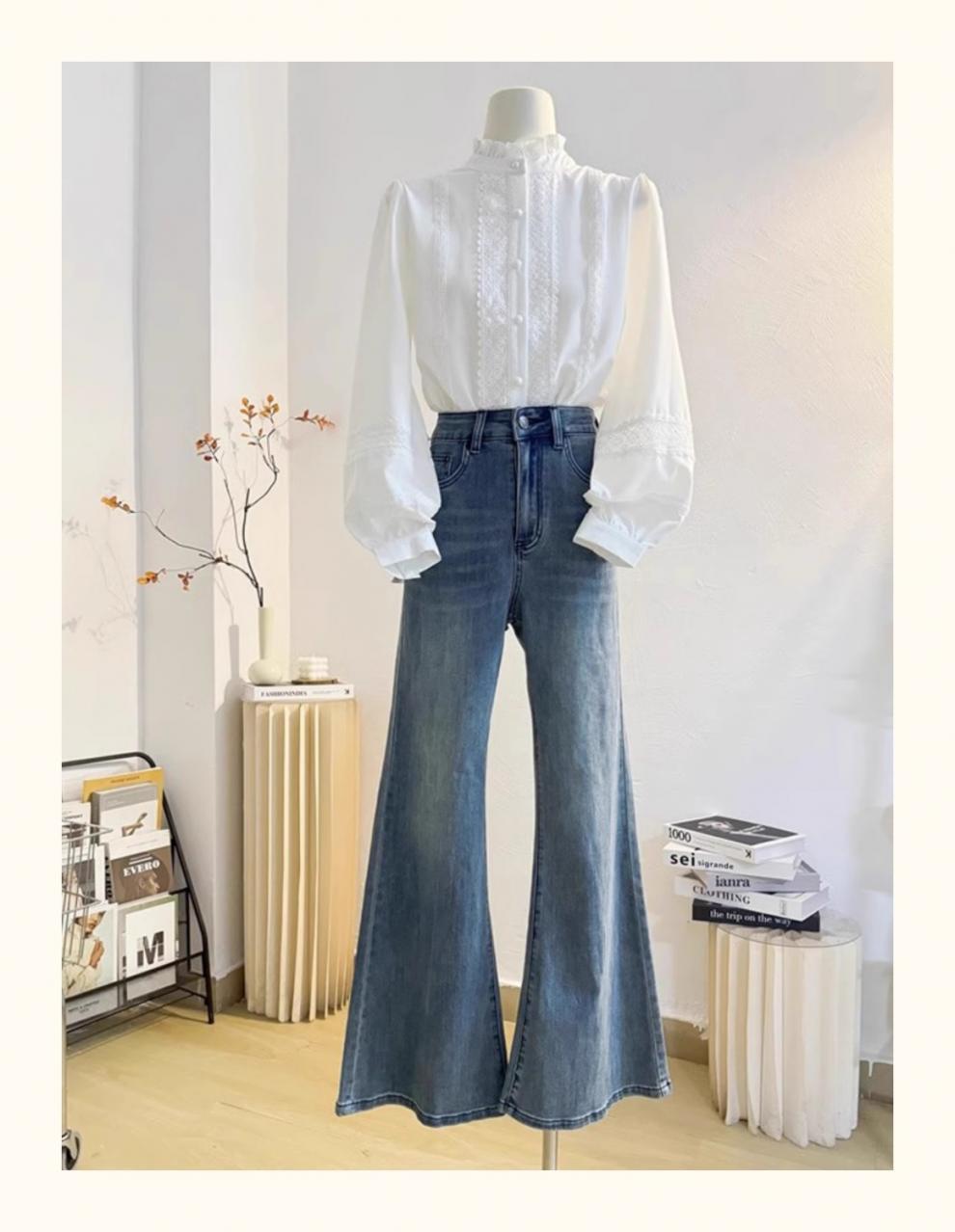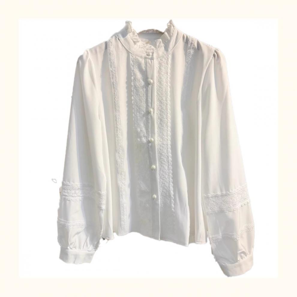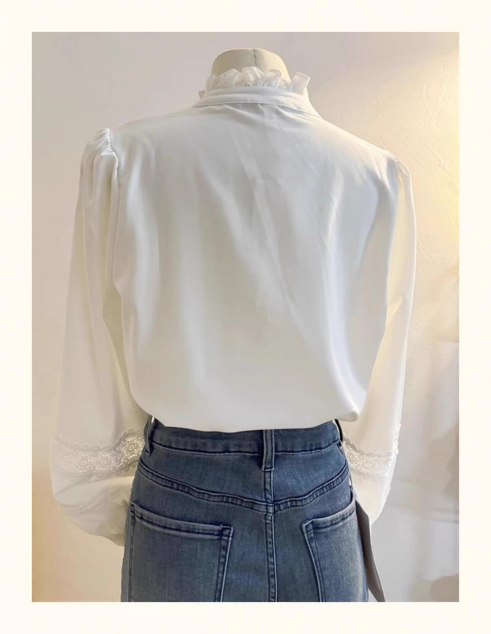 A6C 레이스 바느질 화이트 곰팡이 칼라 셔츠 여성의 2024 가을 서양식 랜턴 긴팔 셔츠스토어 가기