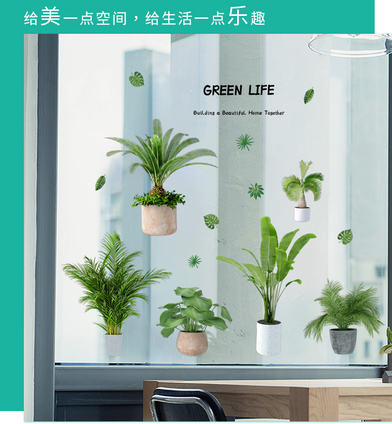신선한 녹색 식물 시뮬레이션 식물 북유럽 벽 스티커스토어 가기