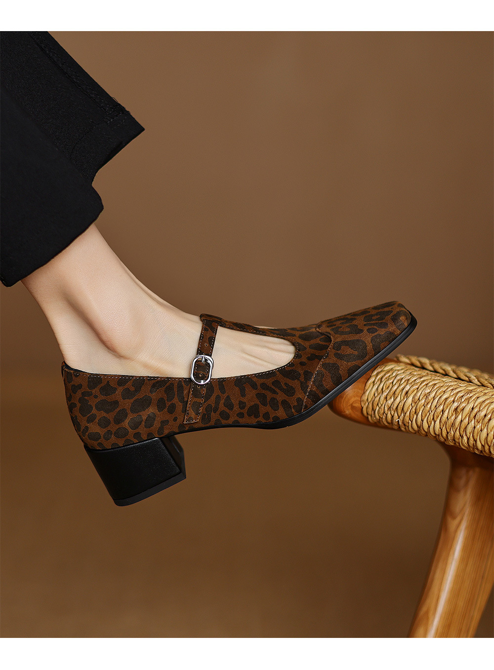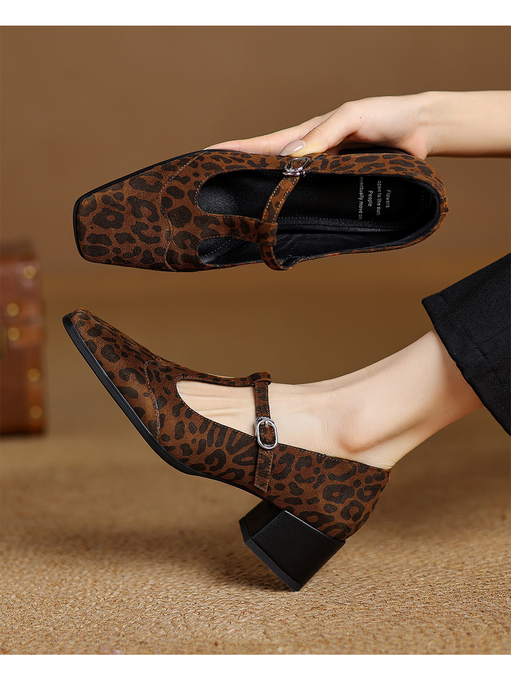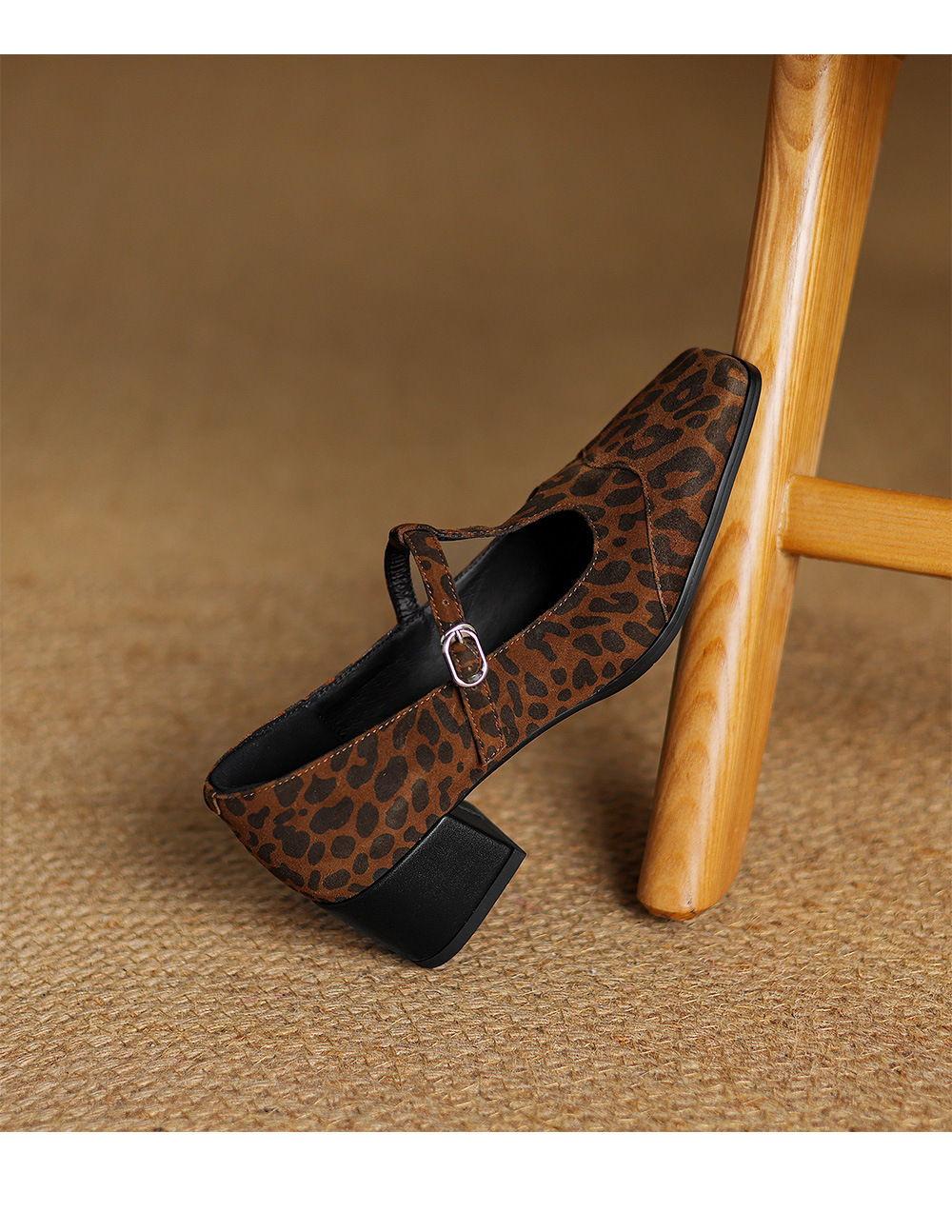청두 수제 여성 신발 ~ 5cm 하이힐 레트로 레오파드 무늬 스퀘어 헤드 메리 제인 신발 봄과 가을 얕은 입 양가죽 두꺼운 뒤꿈치 싱글 신발스토어 가기
