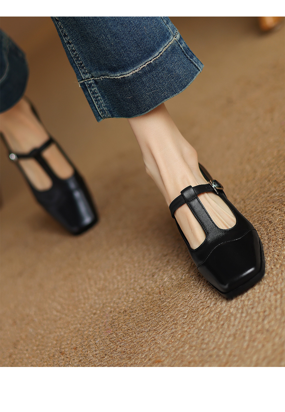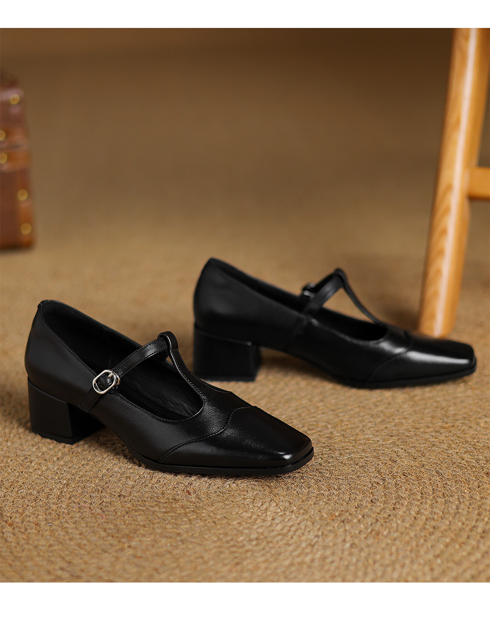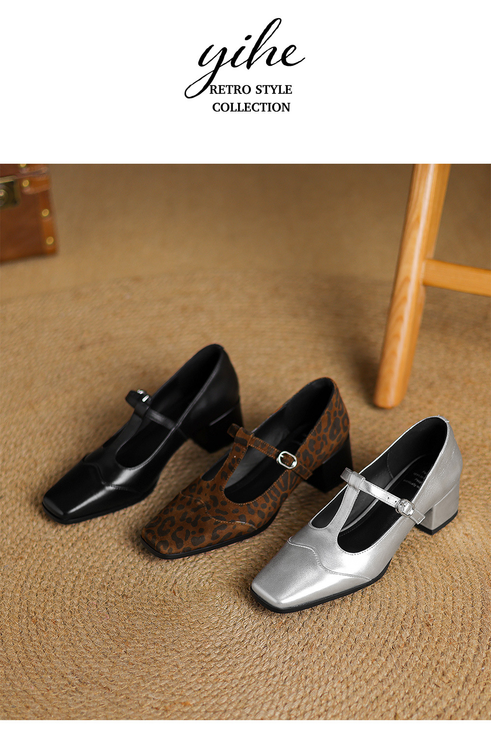 청두 수제 여성 신발 ~ 5cm 하이힐 레트로 레오파드 무늬 스퀘어 헤드 메리 제인 신발 봄과 가을 얕은 입 양가죽 두꺼운 뒤꿈치 싱글 신발스토어 가기