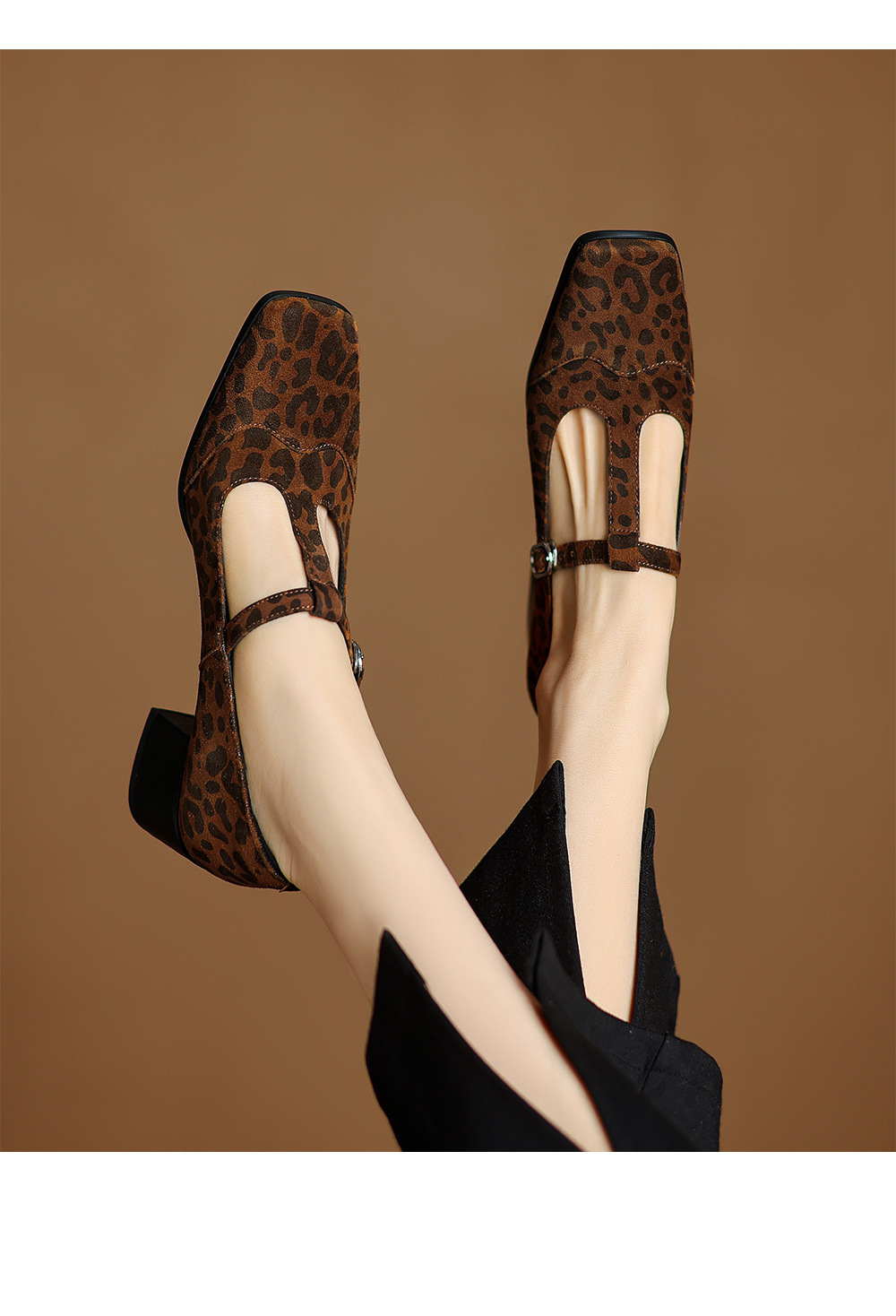 청두 수제 여성 신발 ~ 5cm 하이힐 레트로 레오파드 무늬 스퀘어 헤드 메리 제인 신발 봄과 가을 얕은 입 양가죽 두꺼운 뒤꿈치 싱글 신발