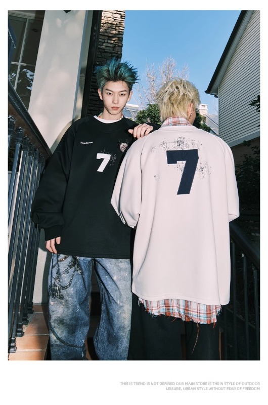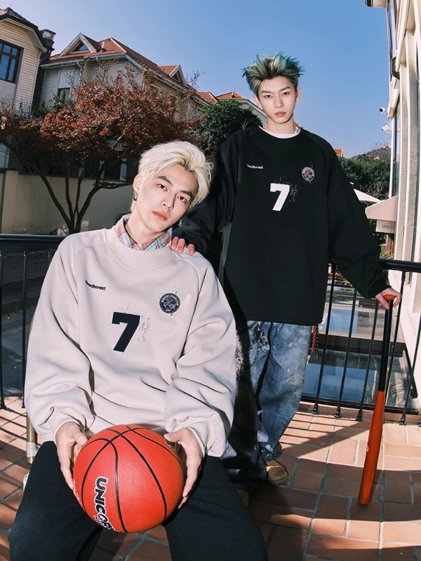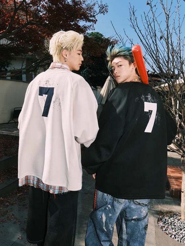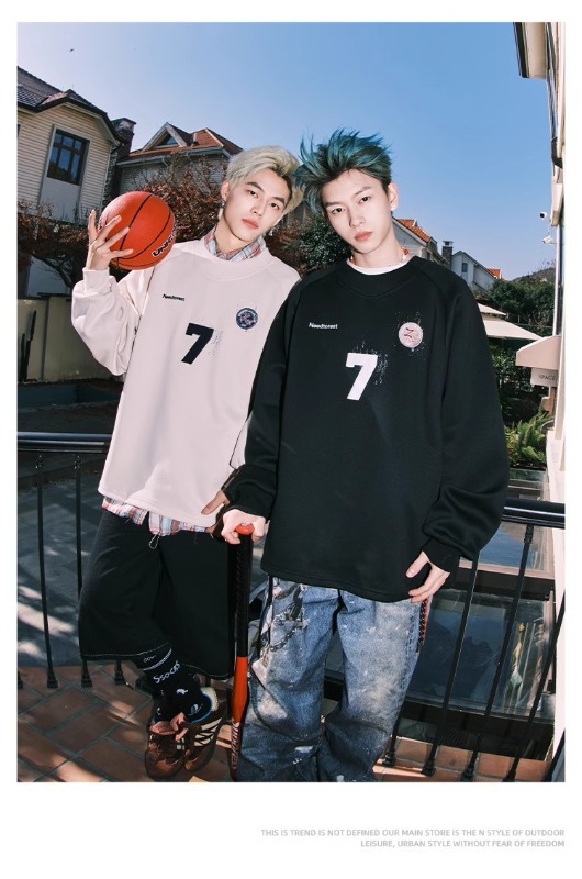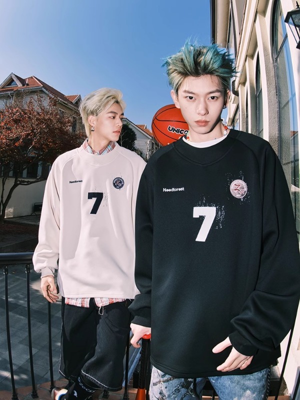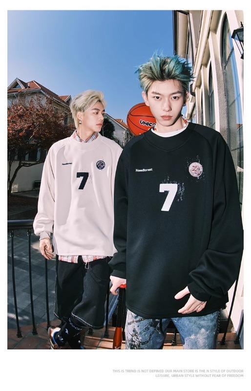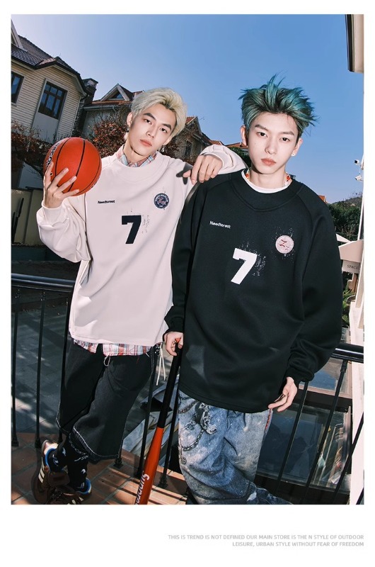 아메리칸 스타일 레트로 저지 스타일 남성과 여성의 느슨한 스웨트 셔츠 봄과 가을 빈티지 하이 엔드 패션 탑 옷스토어 가기