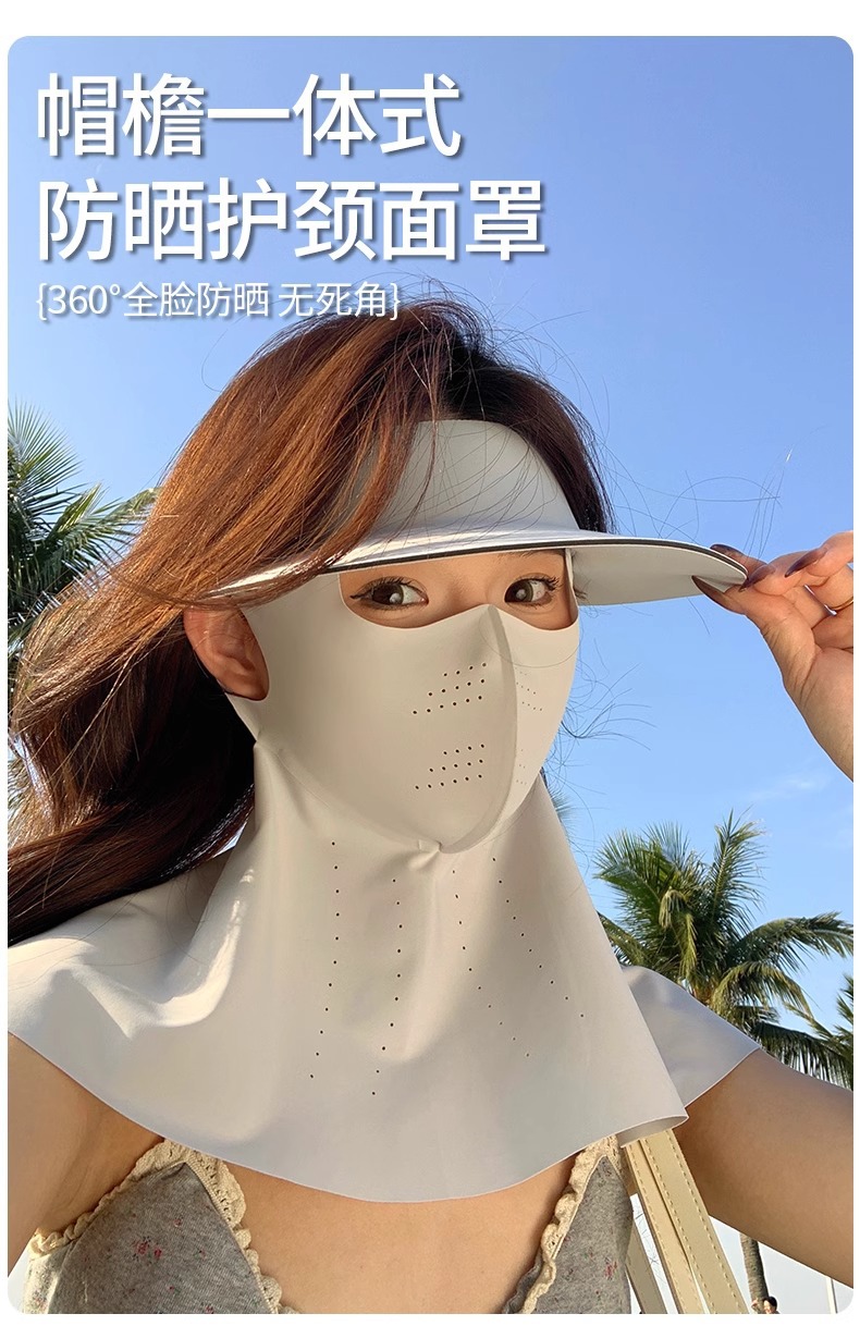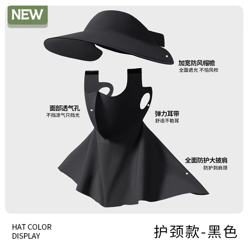 선스크린 풀 페이스 UV 보호 여성의 아이스 실크 블랙 접착제 모자 통합 목 보호 얼굴 지니 승마 마스크