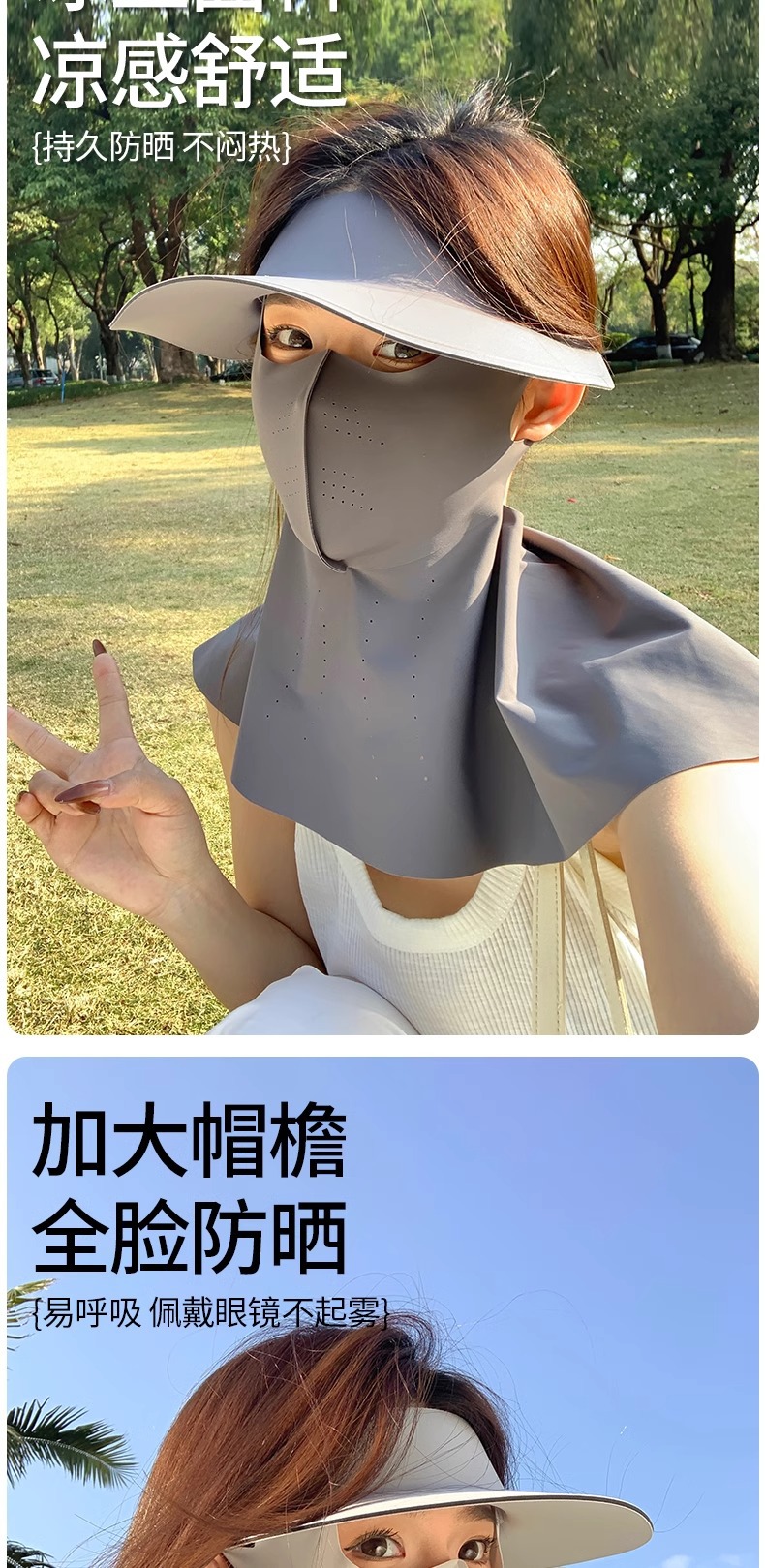 선스크린 풀 페이스 UV 보호 여성의 아이스 실크 블랙 접착제 모자 통합 목 보호 얼굴 지니 승마 마스크스토어 가기