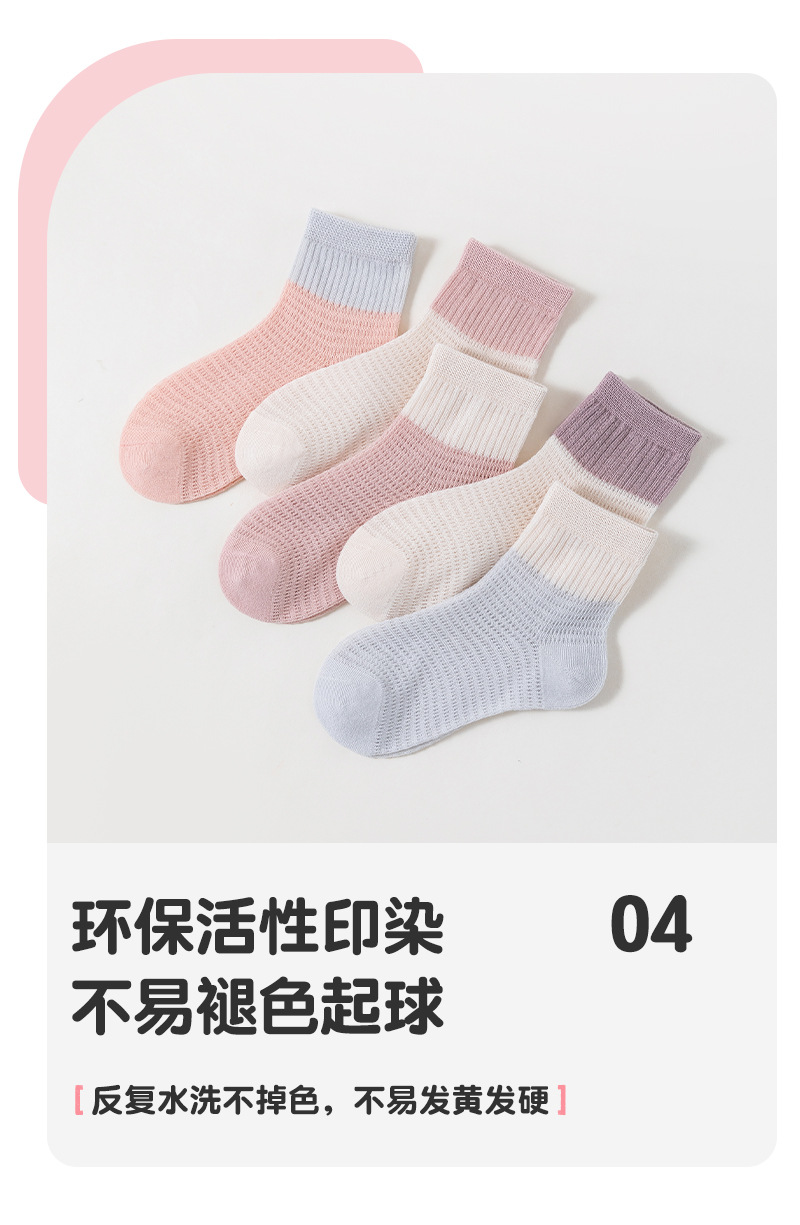 2025 봄과 여름 7A 항균 어린이 양말 여름 메쉬 컬러 매칭 올인원 기계 뼈없는 솔기 헤드 소년 소녀 튜브 양말