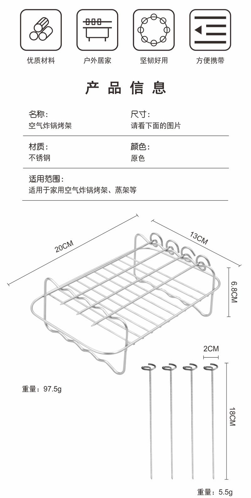 에어프라이어 랙 스테인레스 스틸 에어프라이어 그릴 스티머 랙 베이킹 빵용 다기능 에어프라이어 액세서리스토어 가기