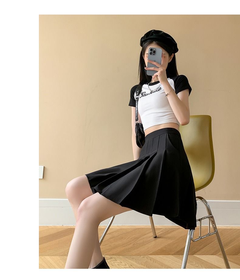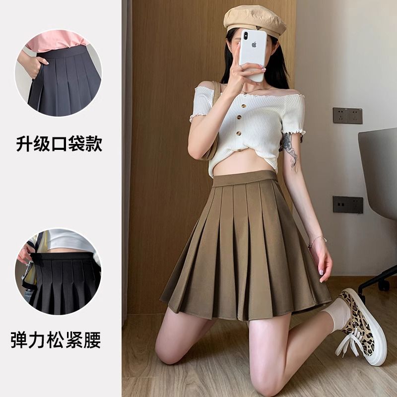 봄과 여름 주름 치마 JK 스커트 아카데믹 스타일 여성의 높은 허리 스트레치 치마 플러스 사이즈 통통녀 슬리밍 엉덩이 커버 A-라인 스커트스토어 가기
