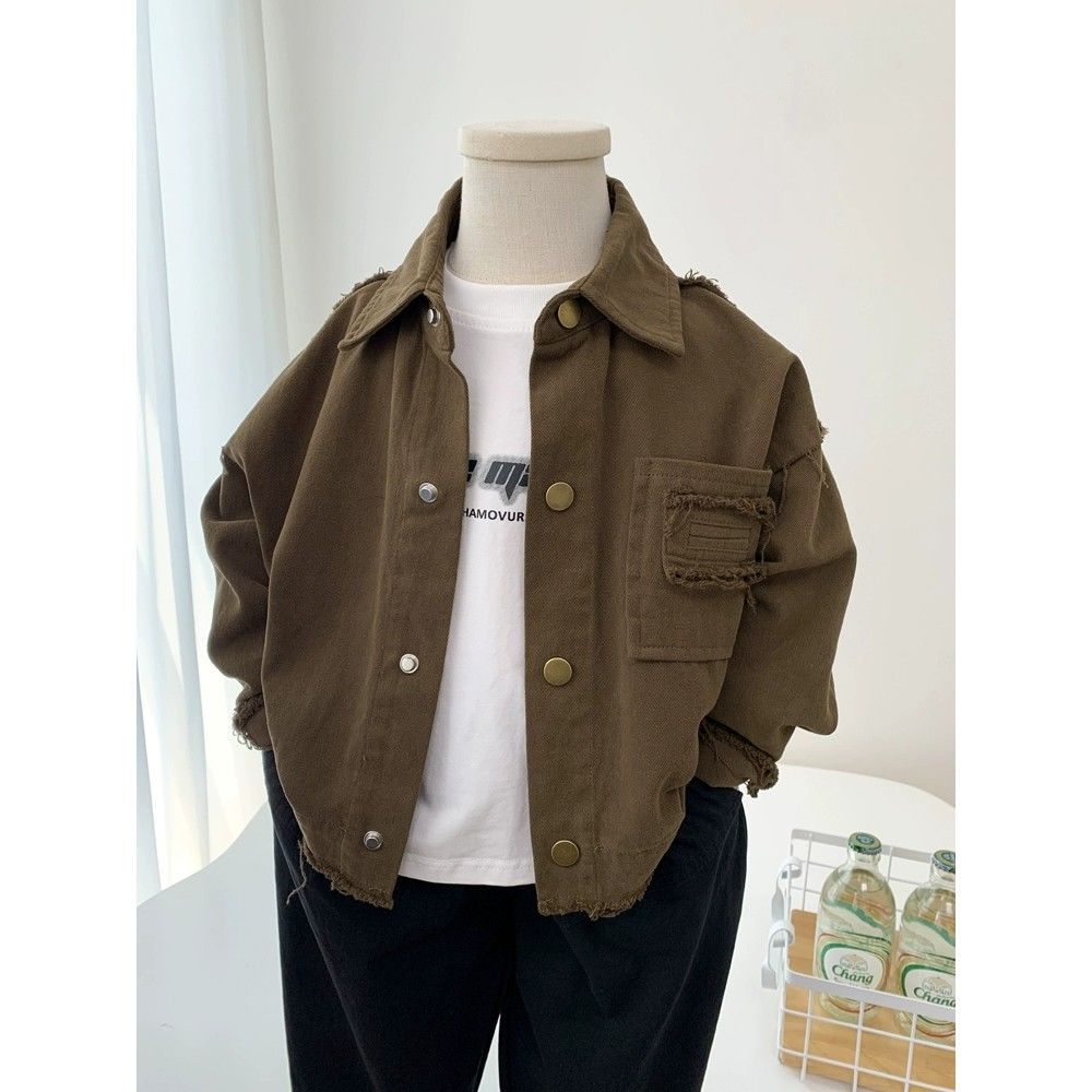 소년 코트 봄과 가을 2024 새로운 한국식 어린이 퓨어 코튼 탑 중소 어린이 트렌디 쿨 팻 핸섬 얇은 재킷스토어 가기