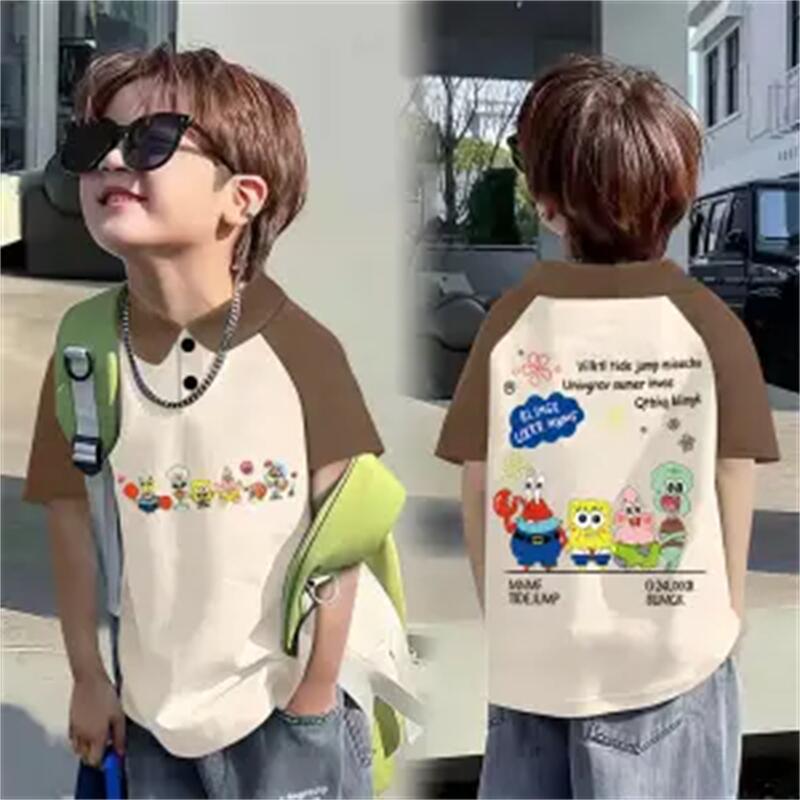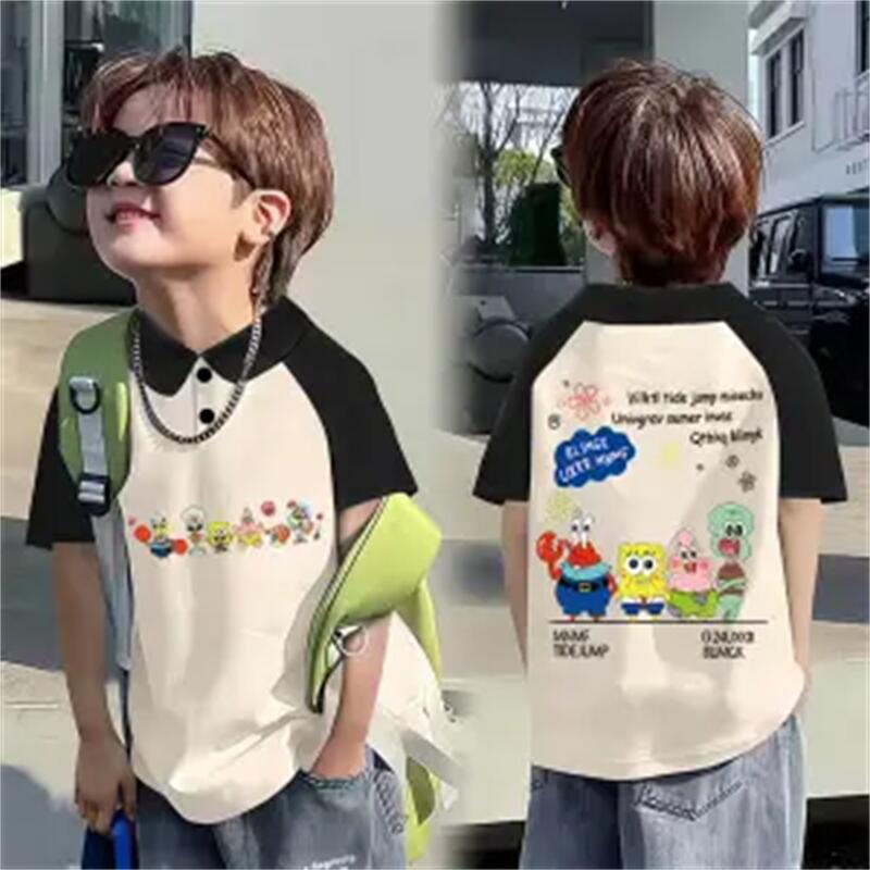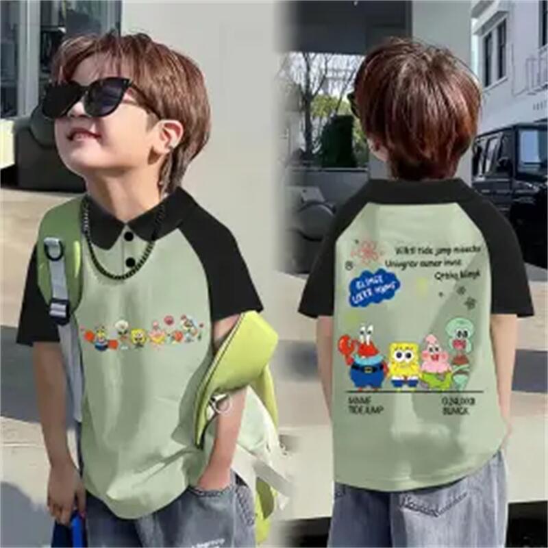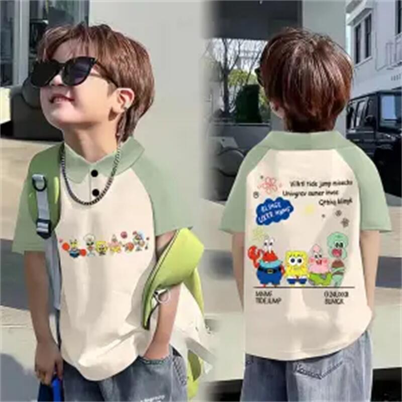 면 여름 반팔 티셔츠 어린이 옷깃 폴로 셔츠 대형 어린이 고급 인쇄 톱 2025 소년을위한 새로운 스타일스토어 가기
