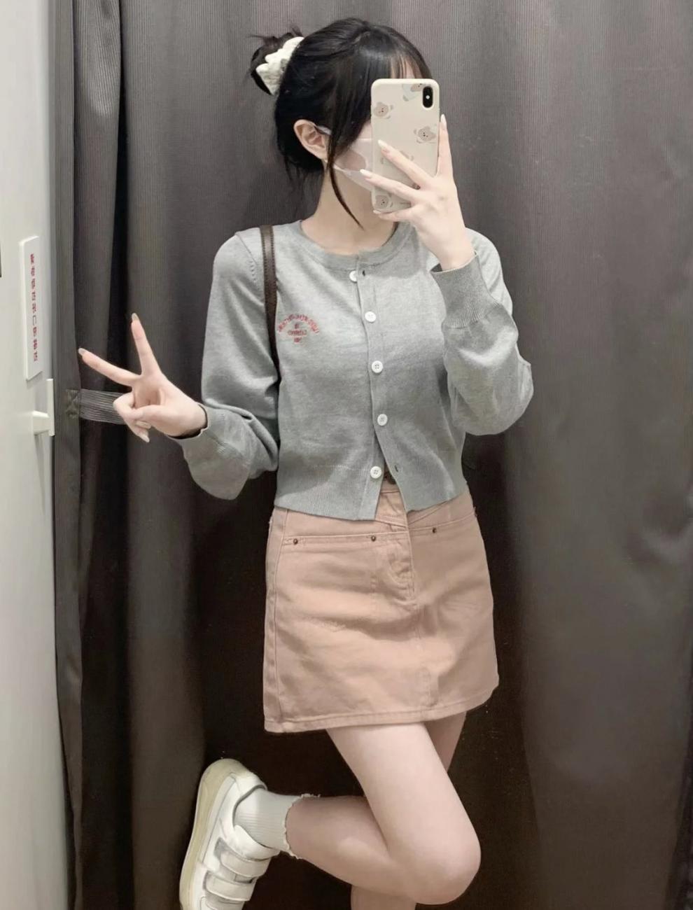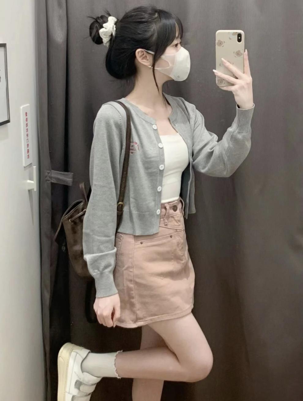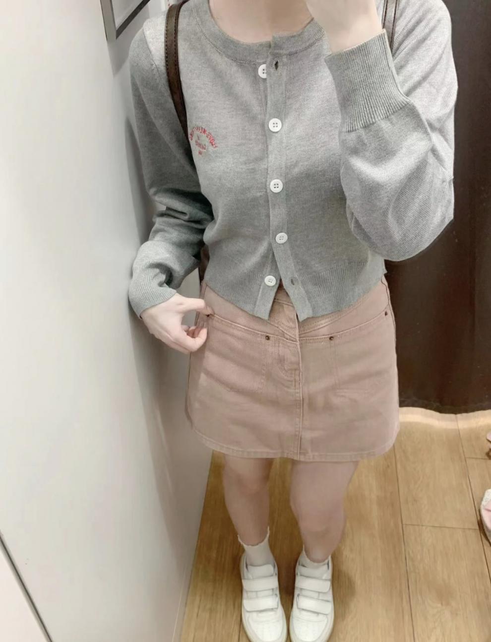 • (2종세트) 그레이 니트 가디건 + 핑크 스커트