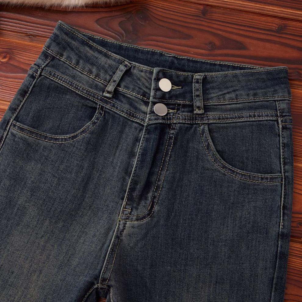 시멘트 회색 얇은 벨벳 마이크로 청바지 여성의 겨울 2025 새로운 하이 웨이스트 슬림 핏 작은 말굽 플레어 팬츠스토어 가기