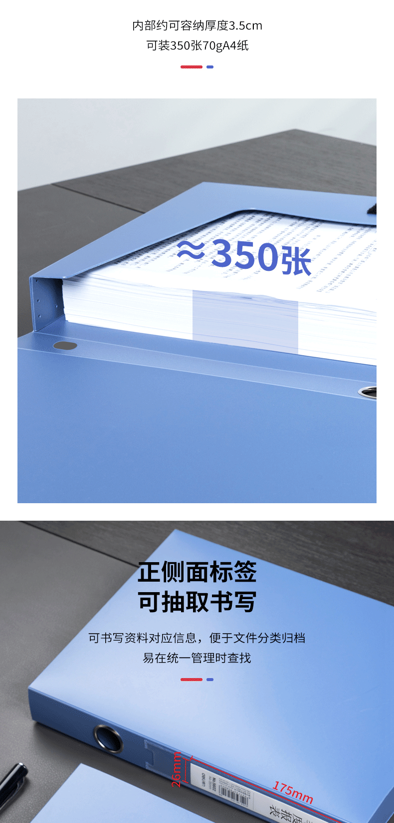 델리 5602 파일 상자 3.5mm 두꺼운 파일 상자 A4 플라스틱 파란색 파일 상자 저장 상자 데이터 상자 도매