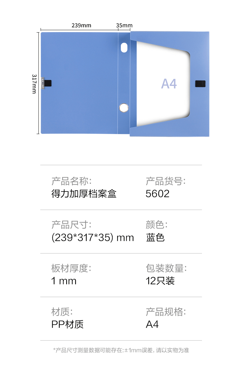 델리 5602 파일 상자 3.5mm 두꺼운 파일 상자 A4 플라스틱 파란색 파일 상자 저장 상자 데이터 상자 도매스토어 가기