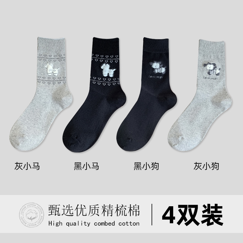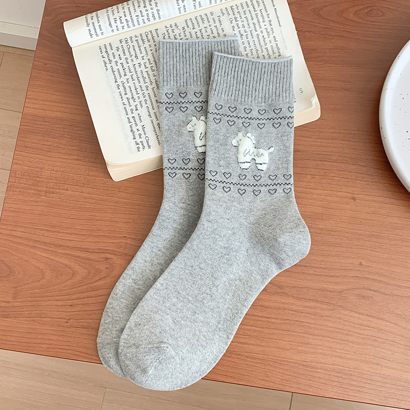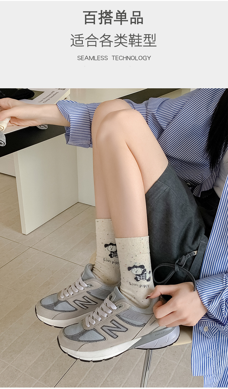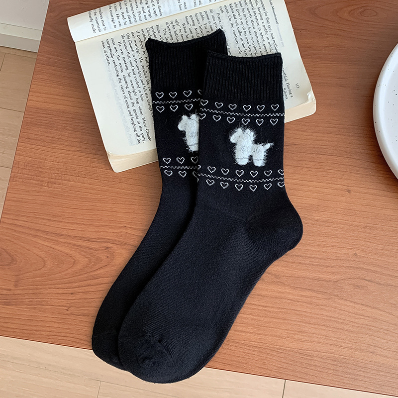 한국 스타일 개인화 된 만화 동물 패턴 소녀의 중추절 봄 가을 편지 귀여운 강아지 스타일 면 양말 올매치