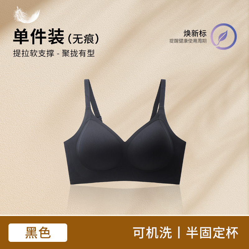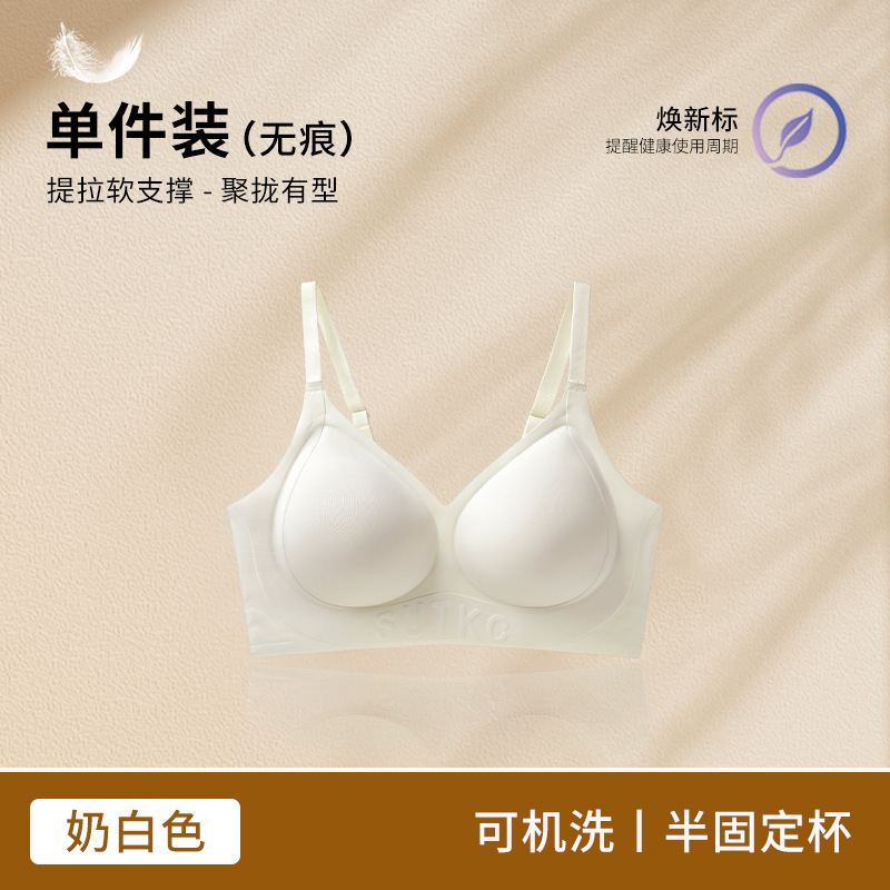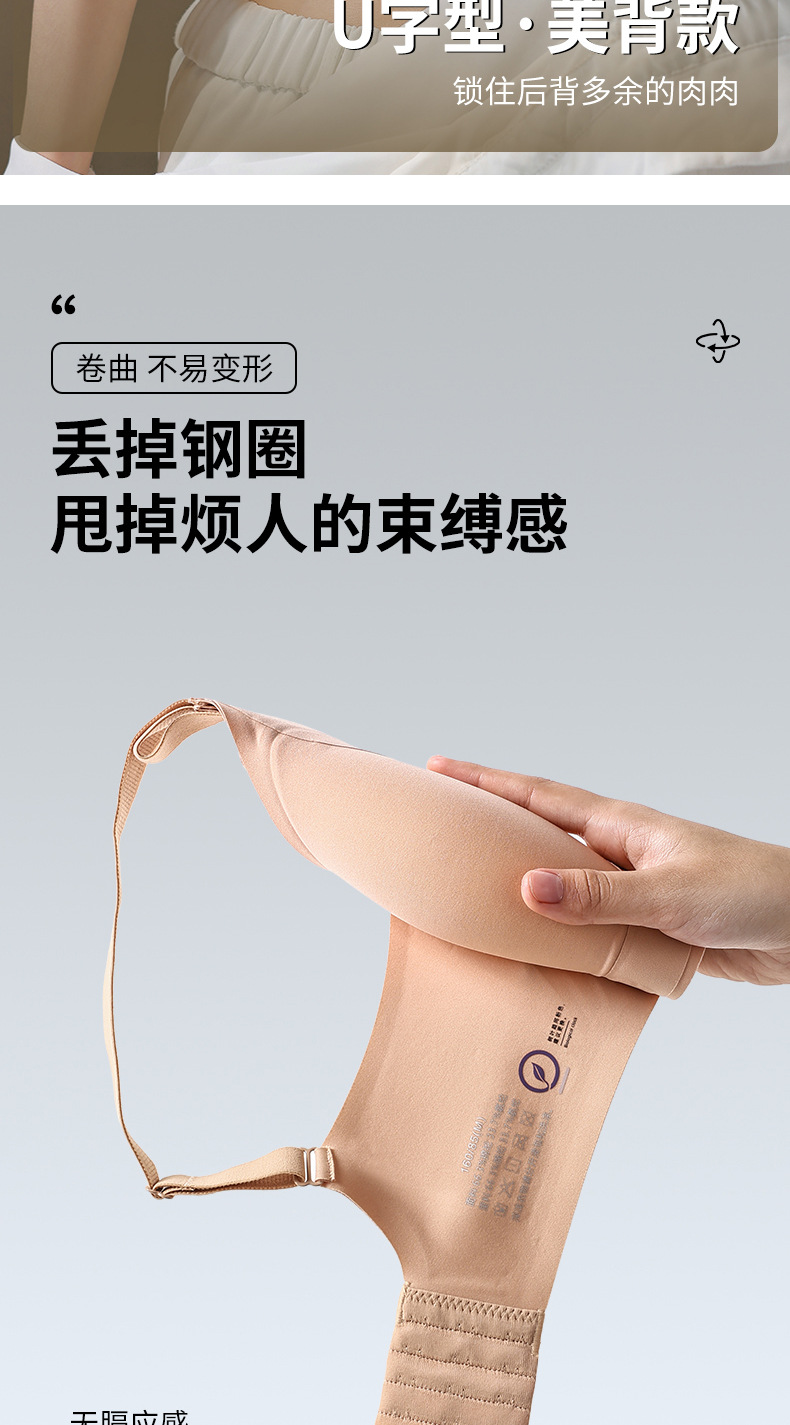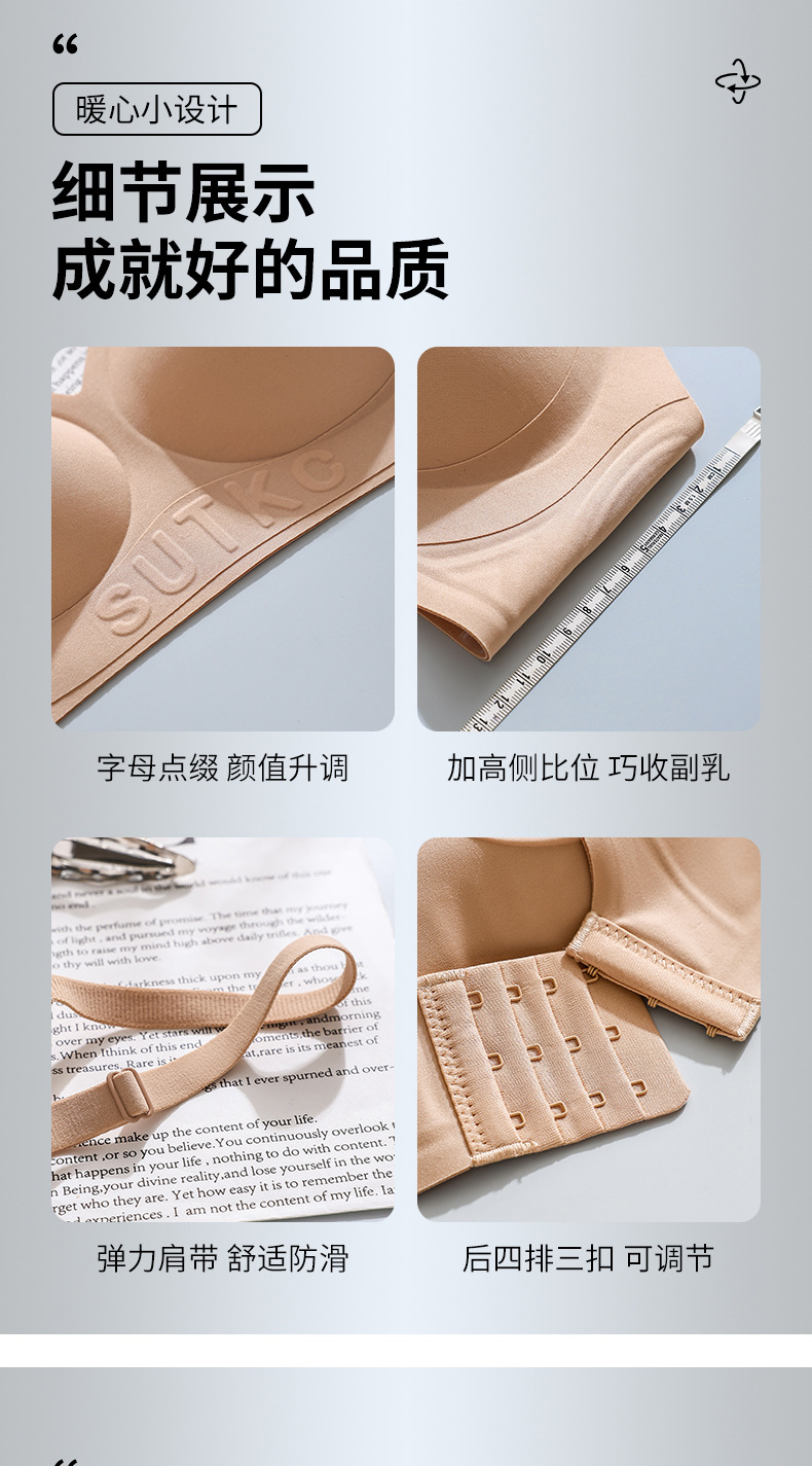 Amoy Pie Tracless 속옷 여성의 작은 가슴 모임 봄과 여름 얇은 Parammary 안티 처짐 고정 컵 여성을위한 아름다운 뒷브래지어스토어 가기