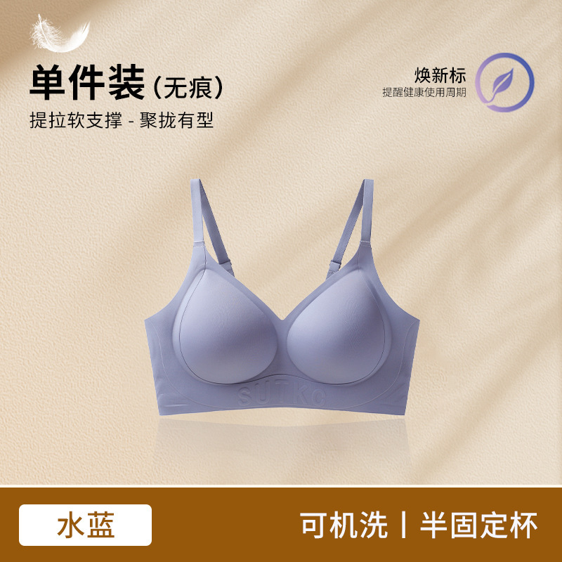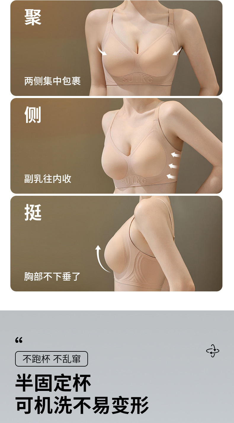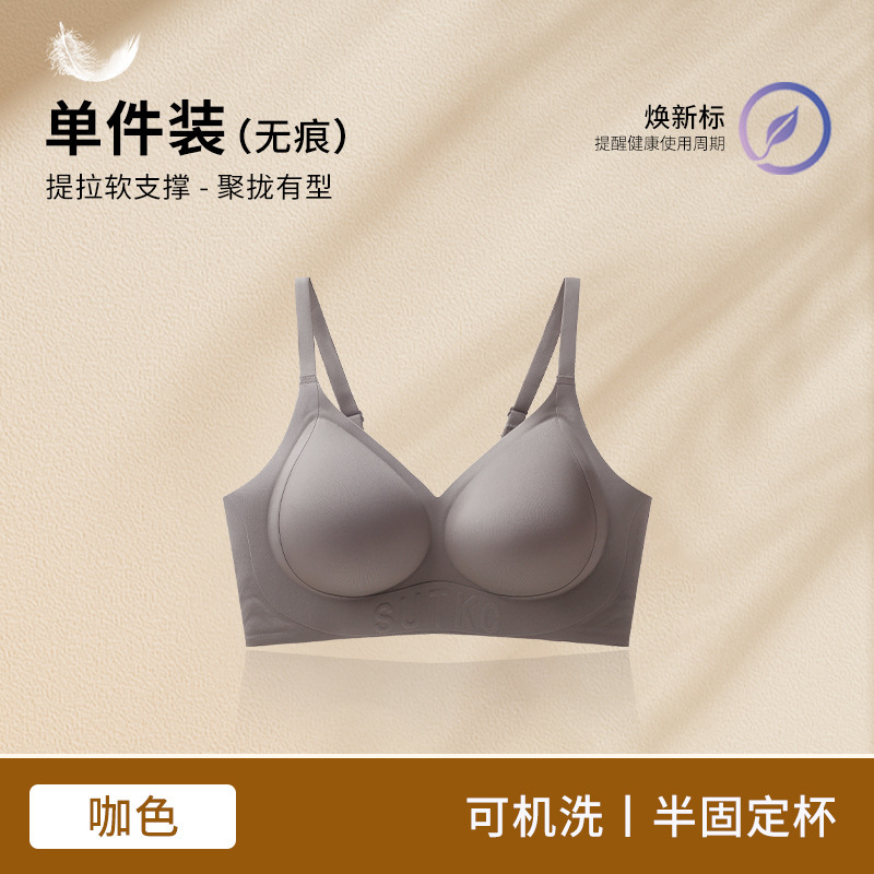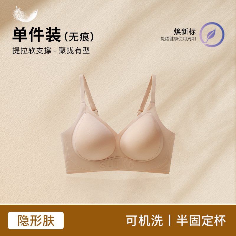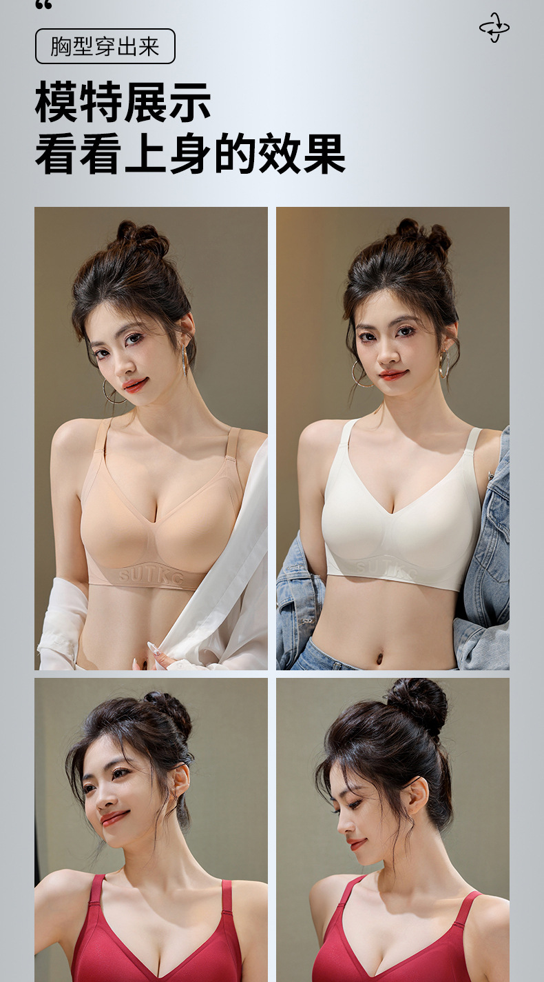 Amoy Pie Tracless 속옷 여성의 작은 가슴 모임 봄과 여름 얇은 Parammary 안티 처짐 고정 컵 여성을위한 아름다운 뒷브래지어스토어 가기