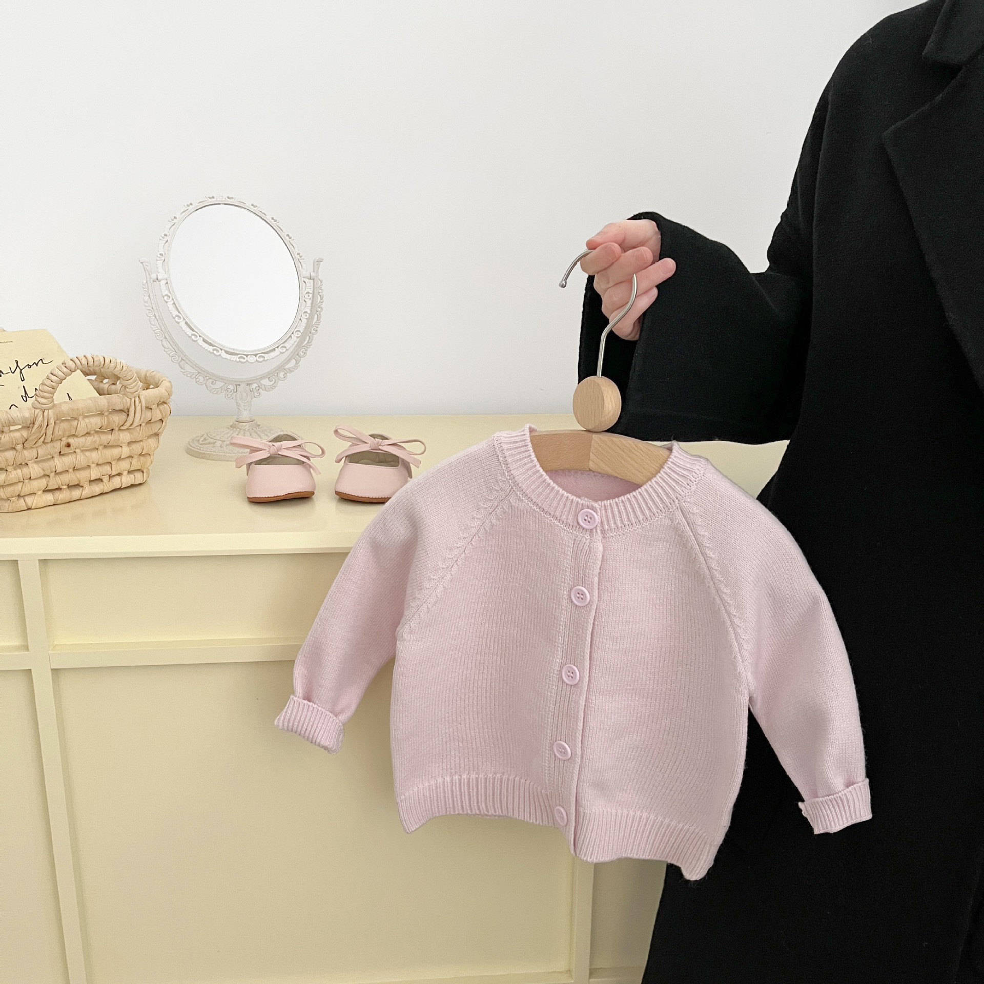 한국 스타일 어린이 니트 카디건 봄 2025 새로운 스타일 서양식 아기 소녀 얇은 단색 스웨터 가을 올 매치 트렌디스토어 가기