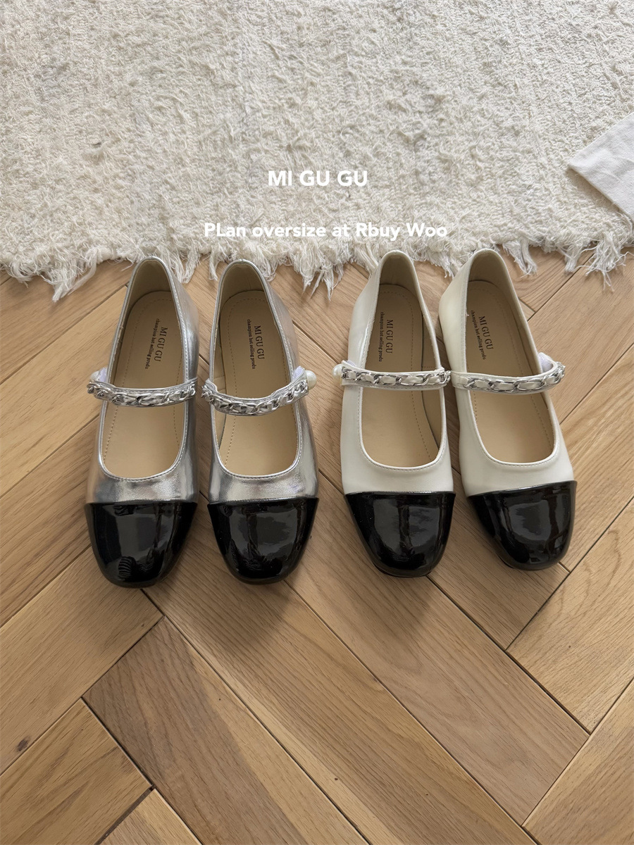 메리 제인 작은 가죽 신발 여성 2025 봄 새로운 요정 스타일 진주 버클 벨트 여성을위한 모든 매치 플랫 비니 신발스토어 가기