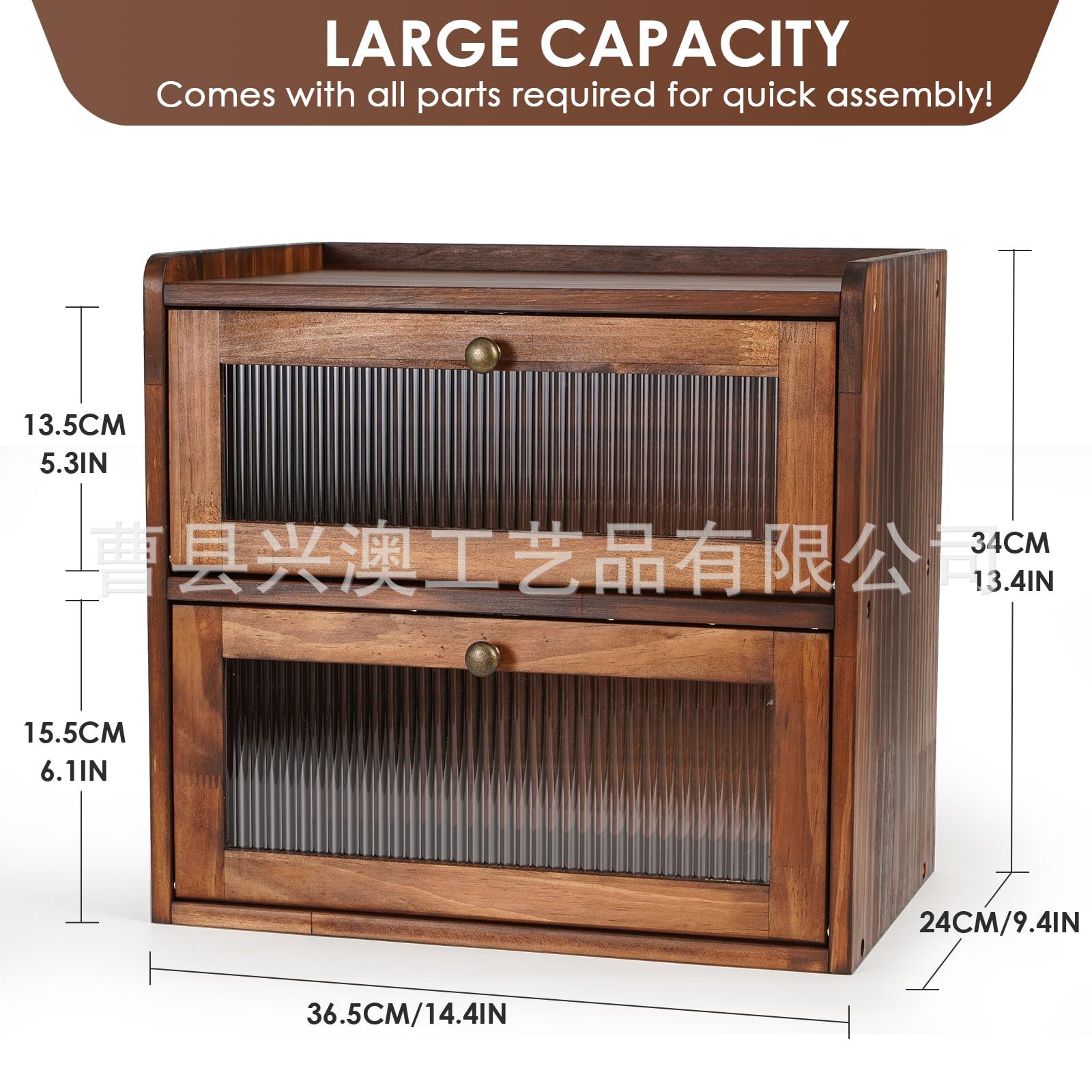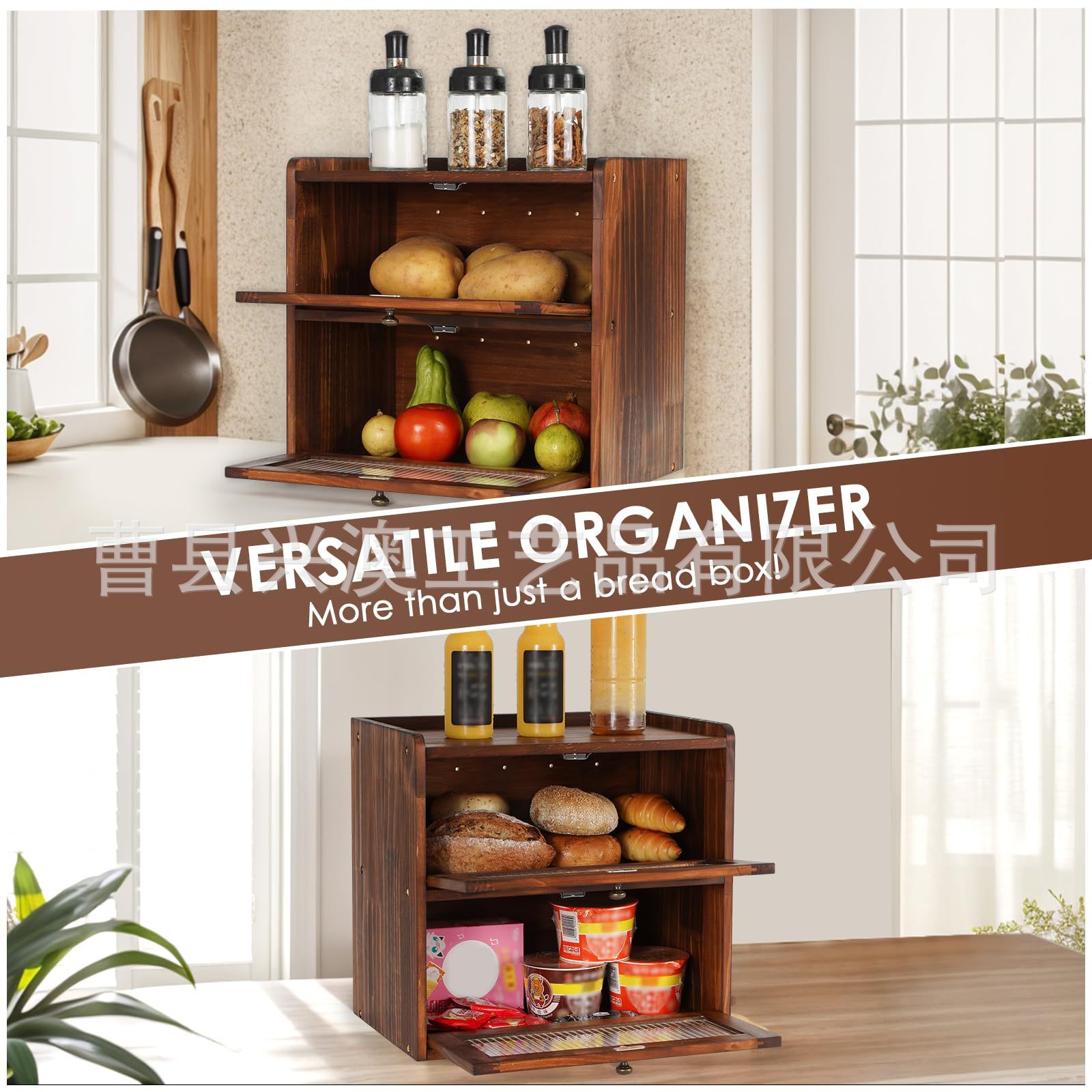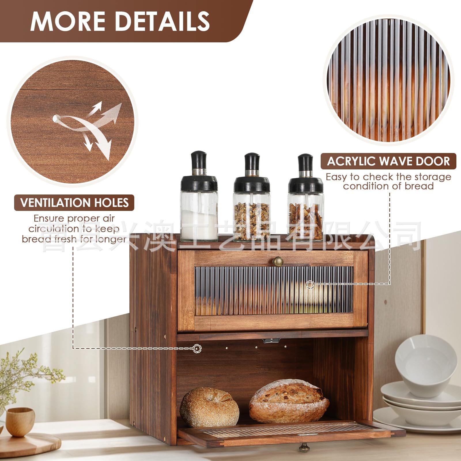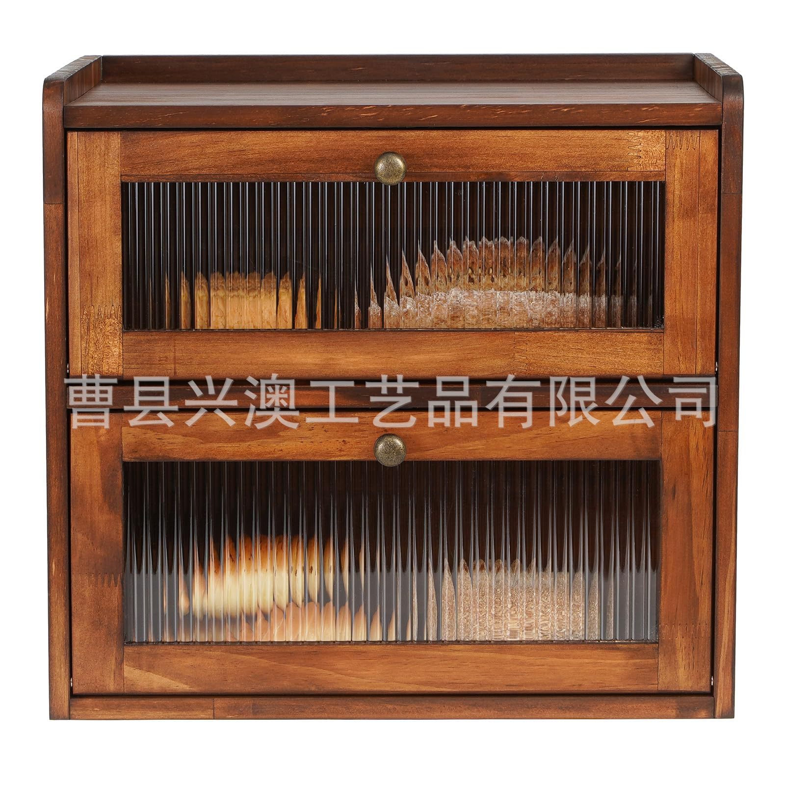 재고 단단한 나무 두 배 층 빵 상자 플립 형 주방 빵 보관 상자 유리 뚜껑 나무 과자 디저트 캐비닛