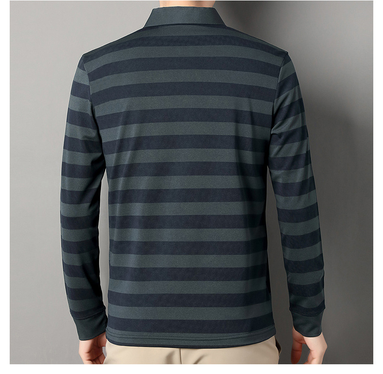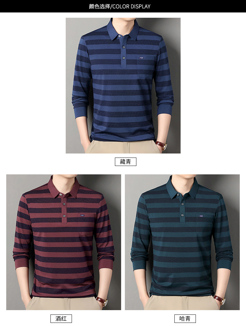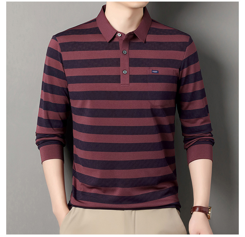 포켓 스트라이프 티셔츠 남자 2025 년 봄과 가을 뉴 루즈 올 매치 중년 남자 보투 밍 폴로 얇은 아빠 티셔츠
