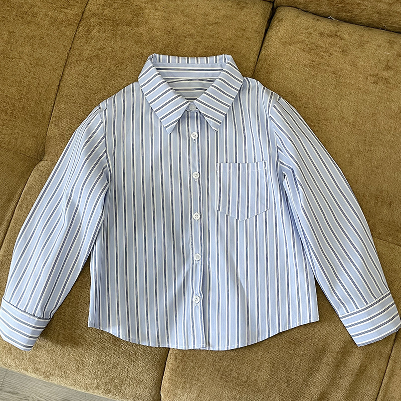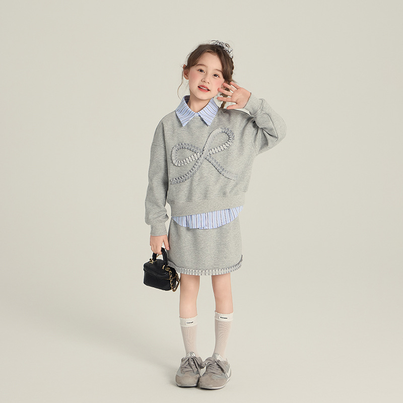 Emo Beibei 어린이 의류 2025 봄 소녀의 옷깃 줄무늬 셔츠 스웨트 셔츠 3 종 세트