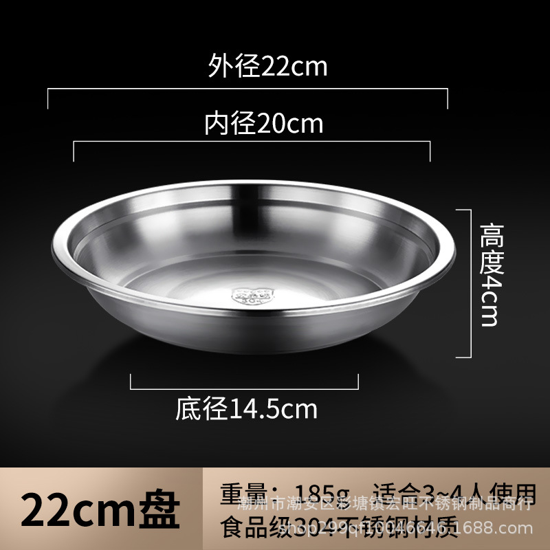 공장 직접 식품 학년 304 스테인레스 스틸 플레이트 가정용 주방 식품 중국 성인 식기 여분의 두꺼운 바베큐 접시스토어 가기