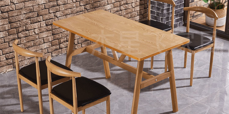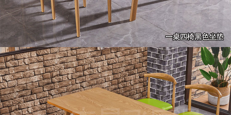 • 120*60 테이블 1개, 의자 4개, 이중 기둥 테이블 다리, 커피 브라운