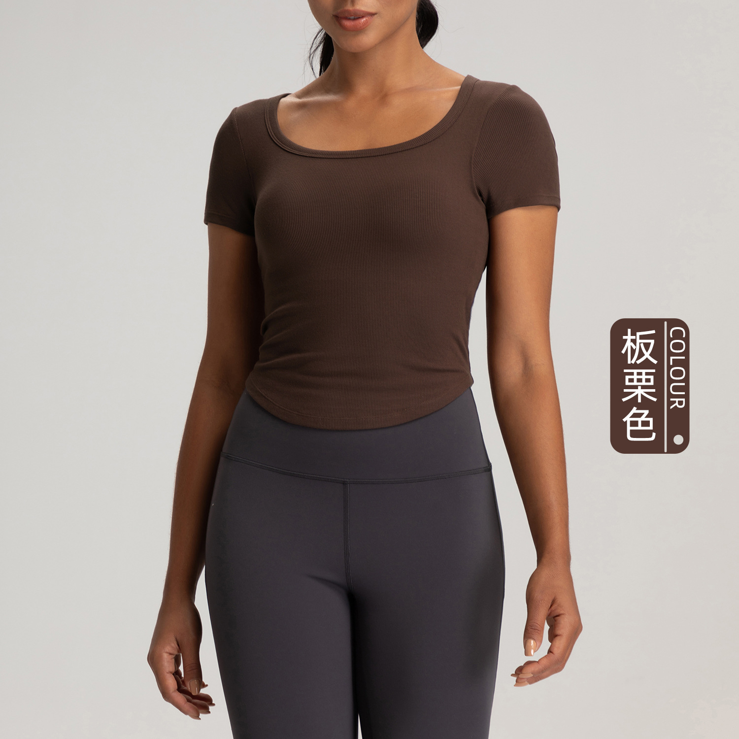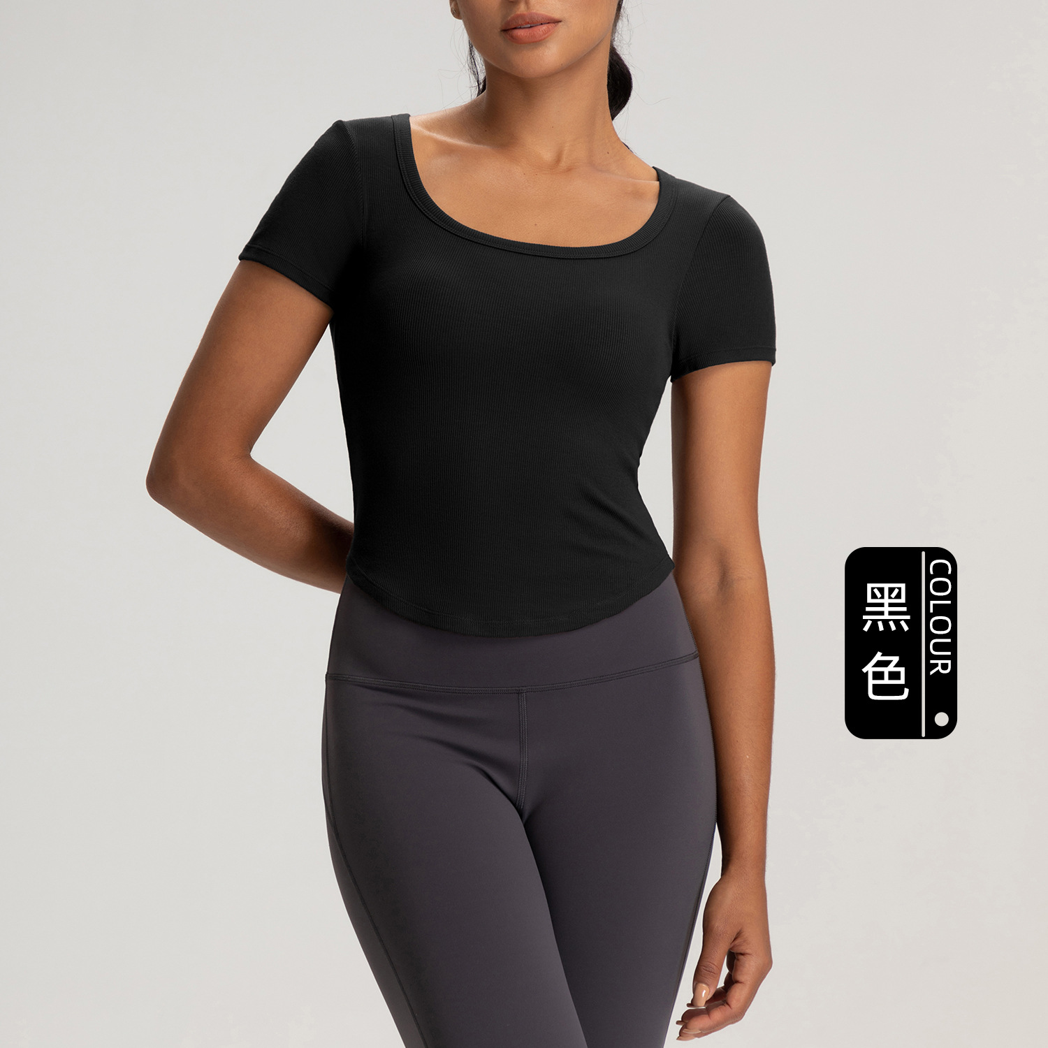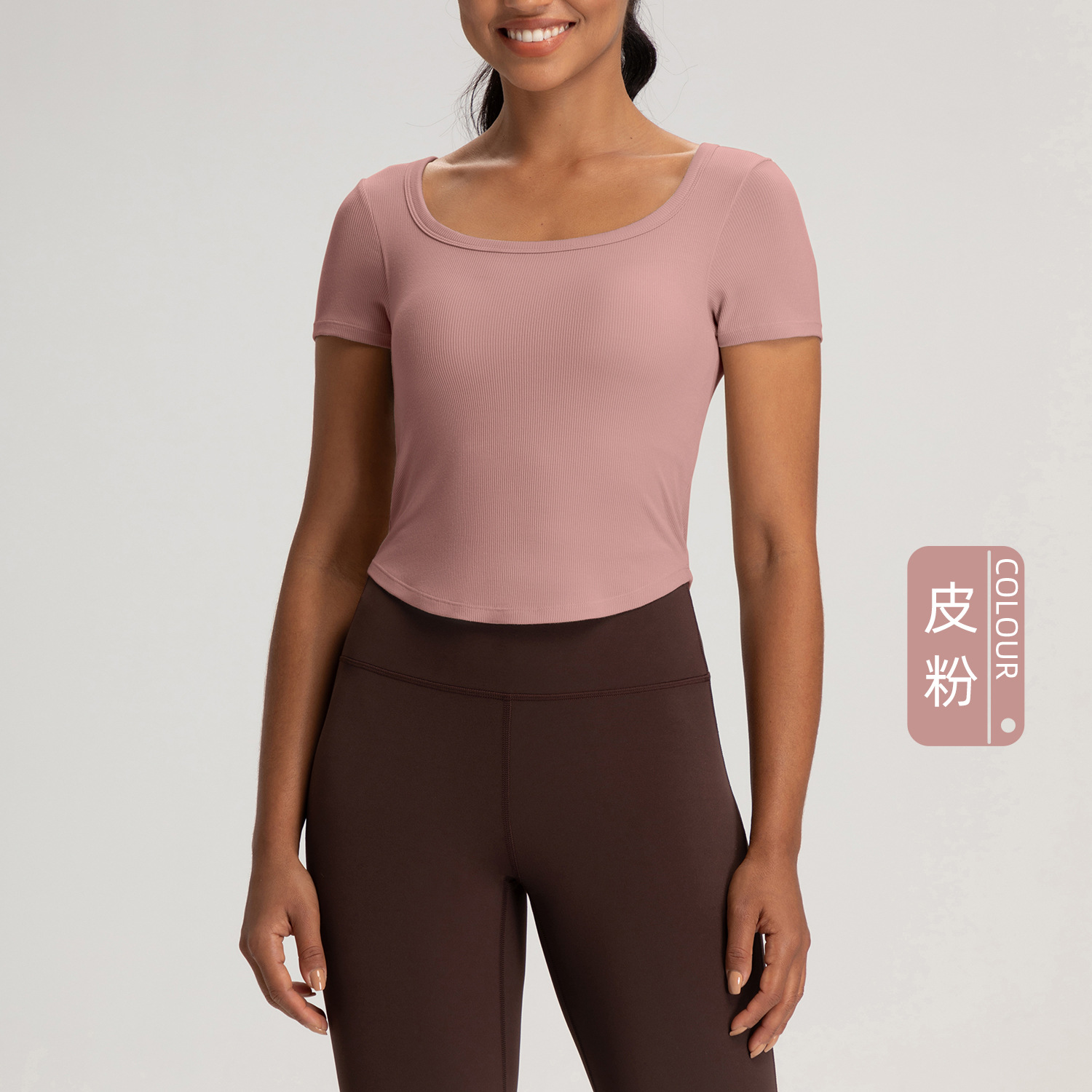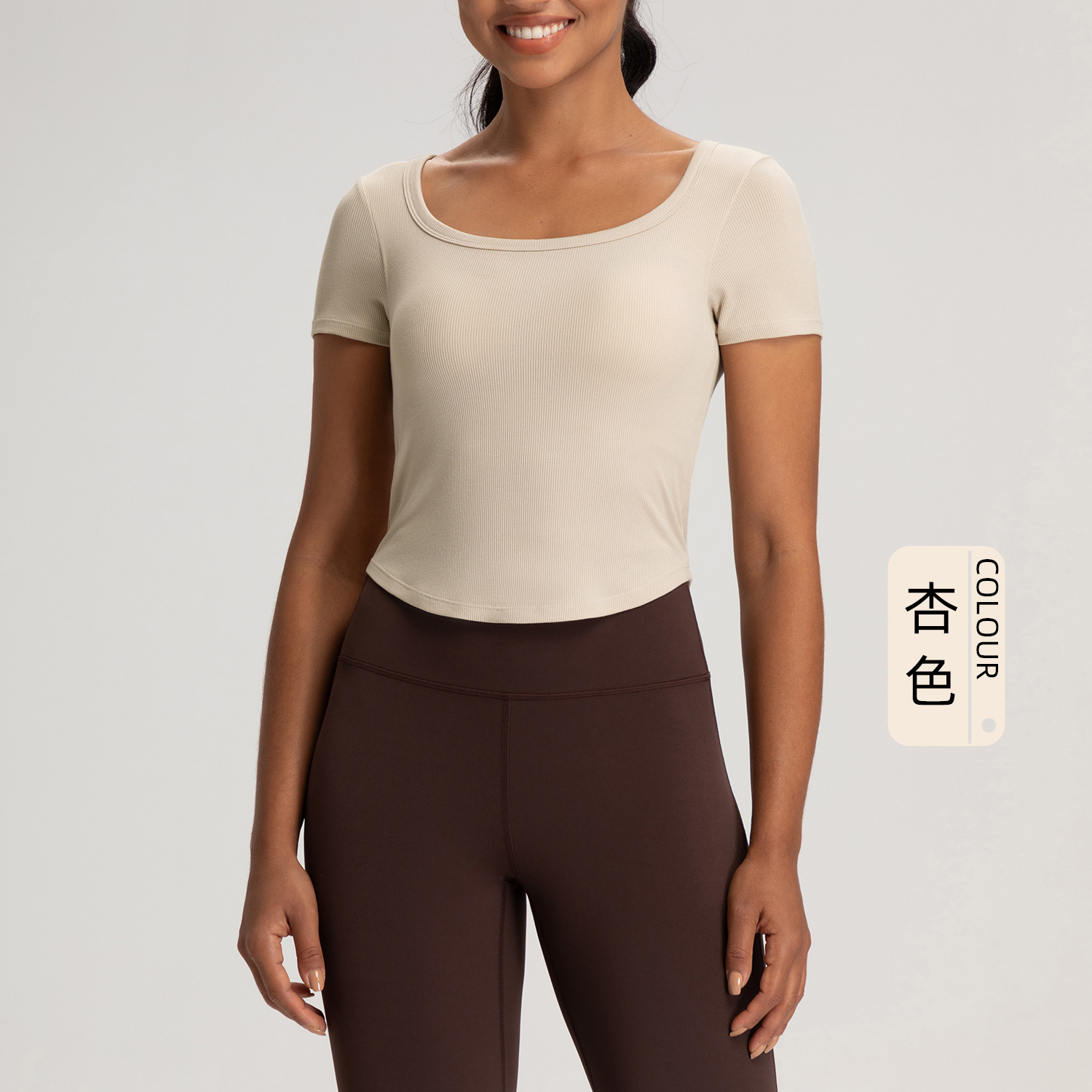 국경 간 유럽과 미국의 여름 요가 의류 여성 가슴 패드 아름다운 반팔 티셔츠 통기성 스포츠 달리기 피트니스 탑