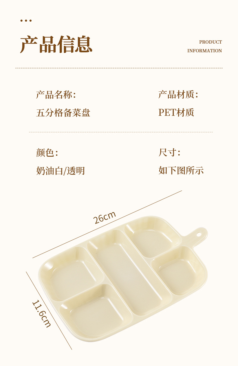 • 商品名称:带把手四分格配菜盘 零食水果盘 儿童餐盘--透白色