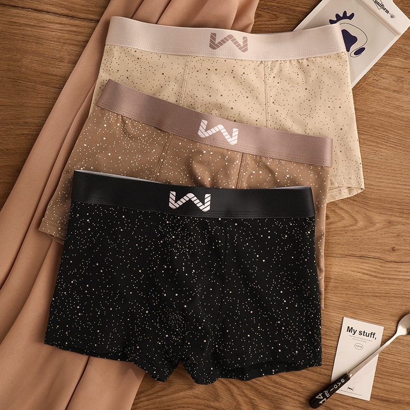 남성 속옷 남성용 복서 코튼 별이 빛나는 하늘 인쇄 항균 크로트 통기성 중간 허리 남성 복서 속옷