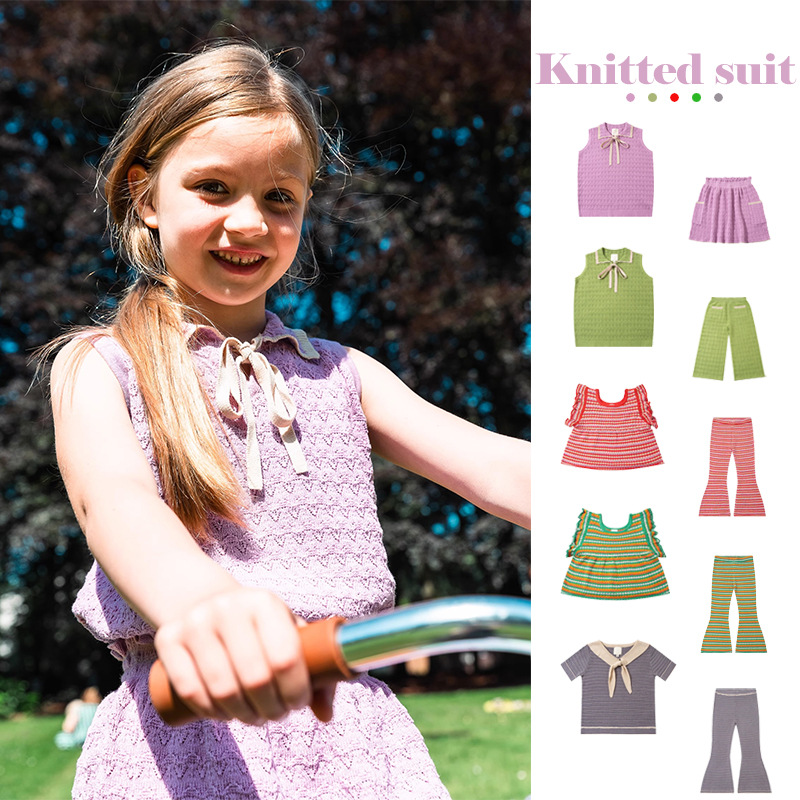 재고! 여자 스웨터 25 여름 KP 어린이 목가적 조끼 스트랩 칼라 니트웨어 스커트 바지 세트스토어 가기
