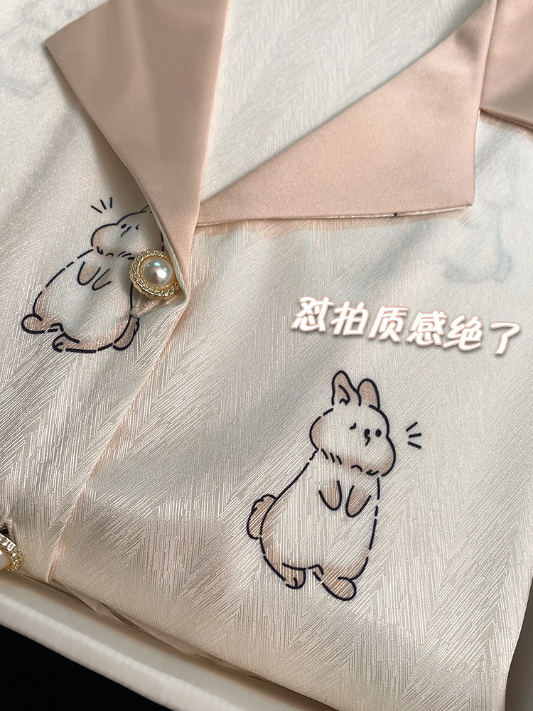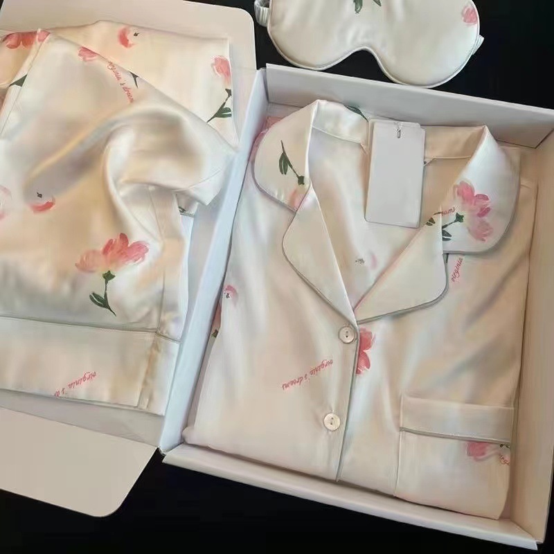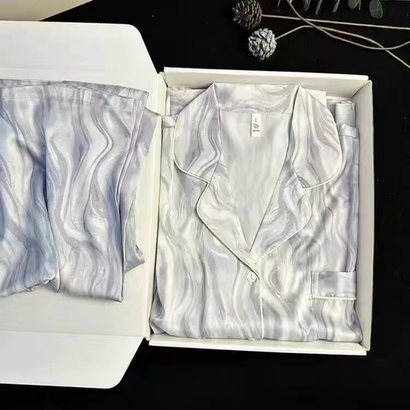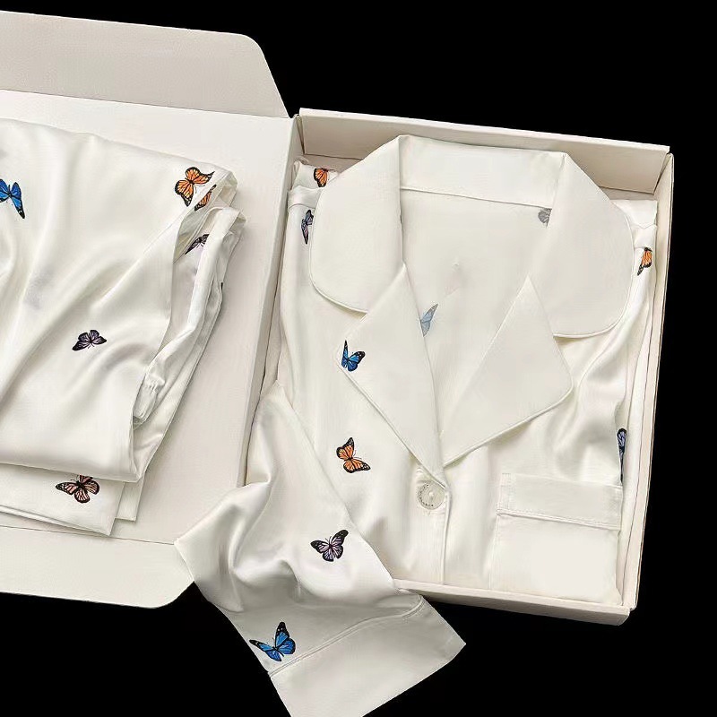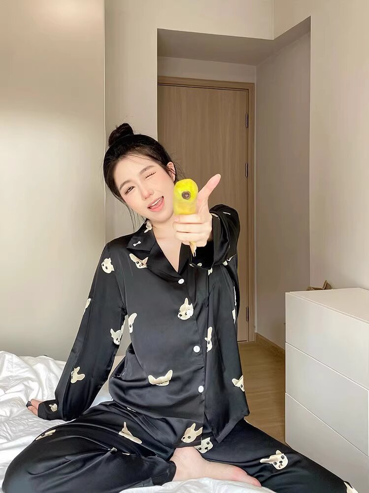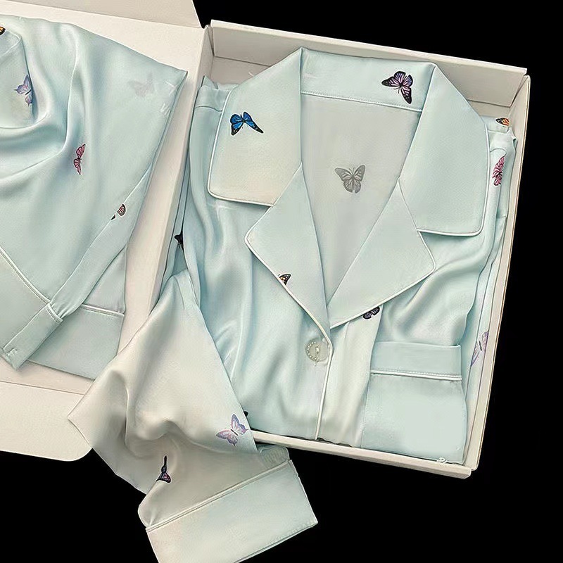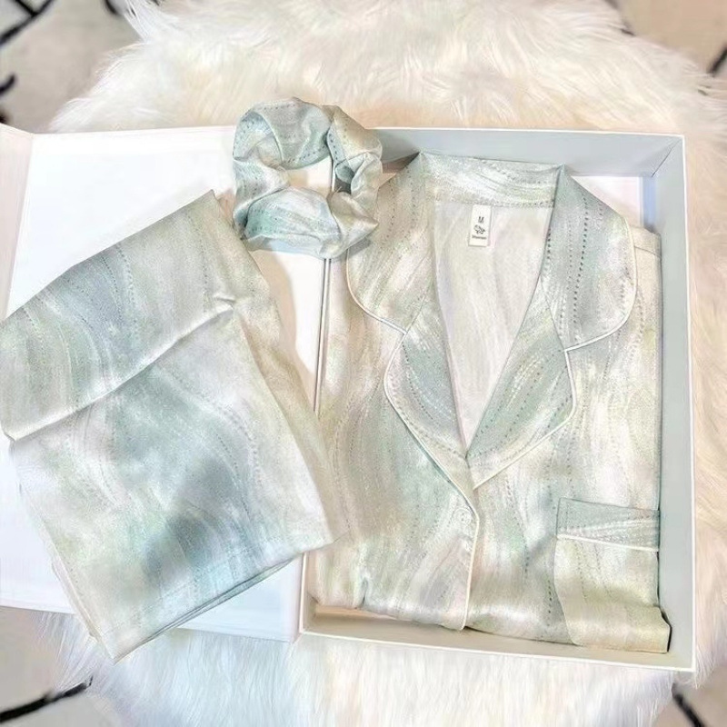 프랑스 고급 아이스 실크 긴 소매 파자마 여성의 봄과 가을 2025 새로운 도착 바지 학생 홈 의류 세트스토어 가기