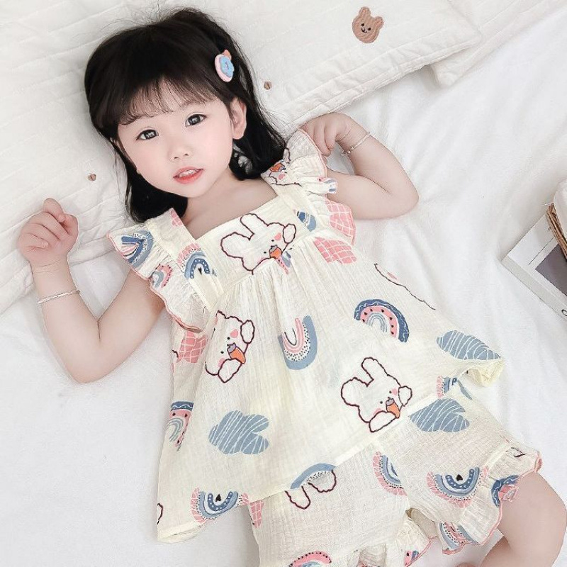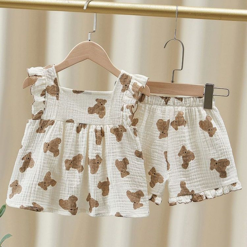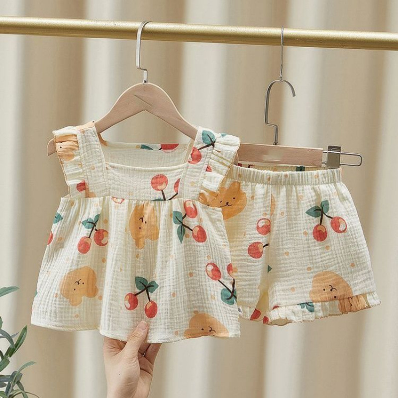 잠옷 슬링 어린 소녀 여름 얇은 소녀 달콤한 체리 베어 외국식 어린이 세트 홈 세트스토어 가기