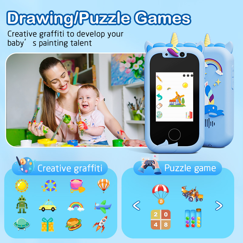 국경 새로운 어린이 휴대 전화 카메라 사진 비디오 게임 미니 곰 휴대용 터치 스크린 귀여운 장난감스토어 가기