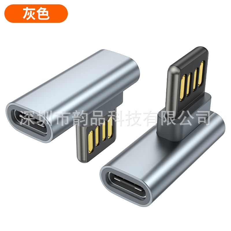게임 90 ° 곡선형 양면 블라인드 플러그 USB 남성-타입-C 여성 어댑터(음악 듣기 및 충전용) 차량용 변환기