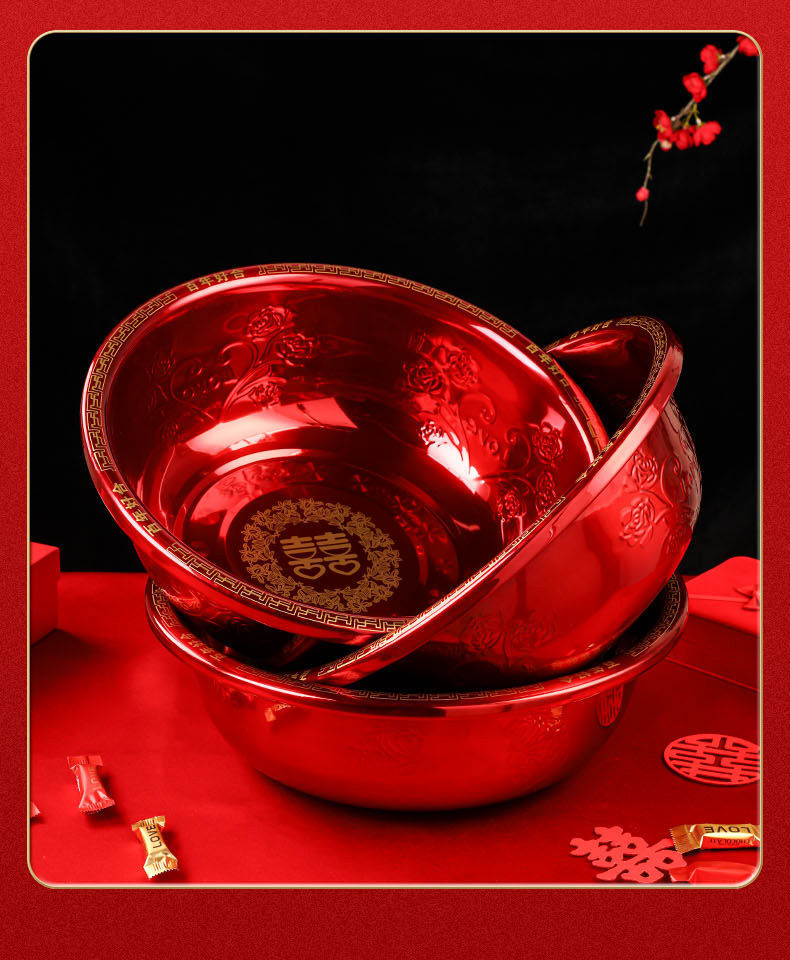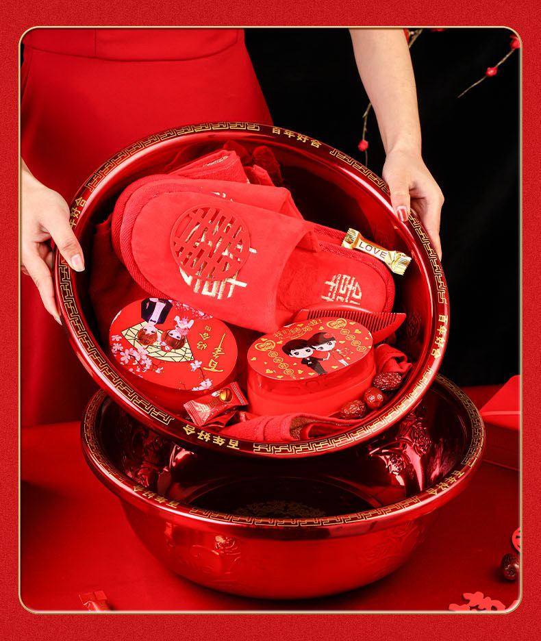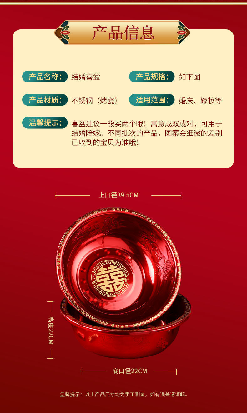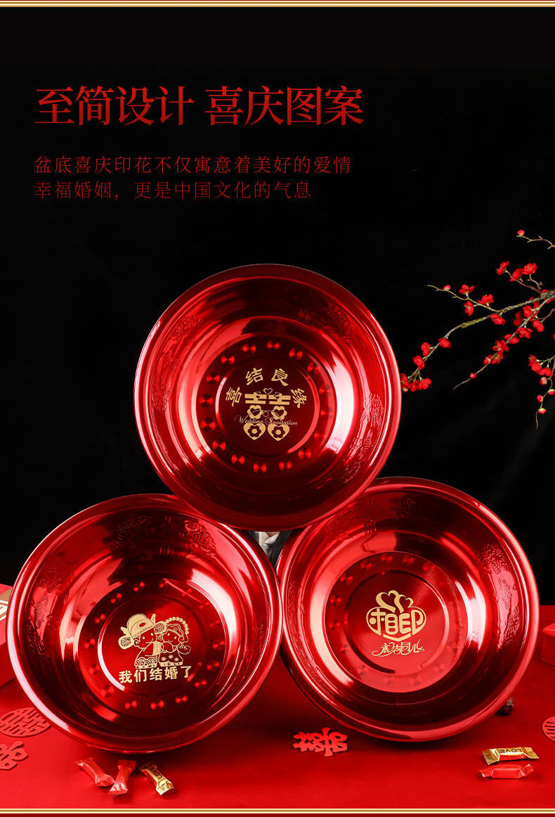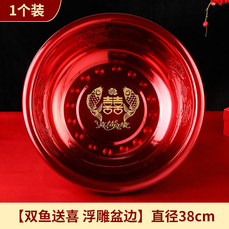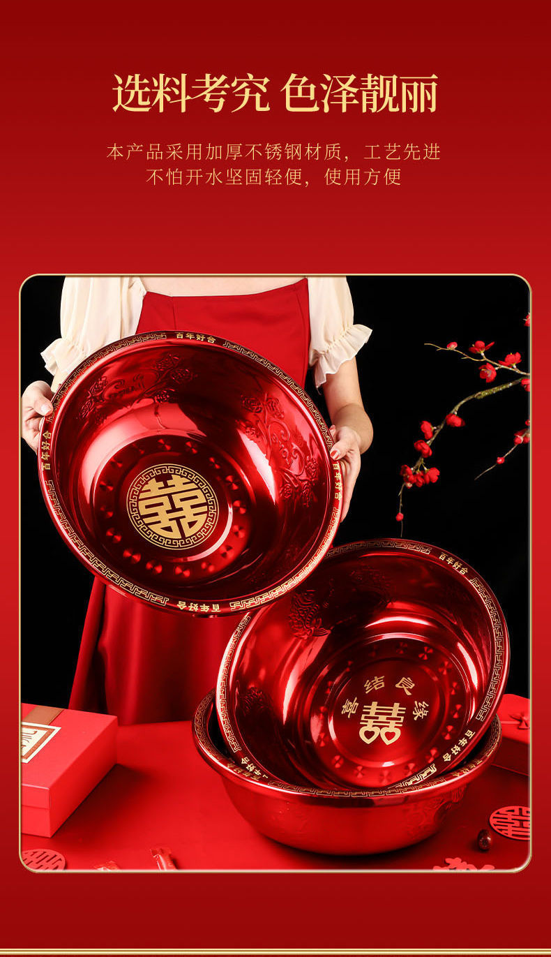 웨딩 분지 두꺼운 스테인레스 스틸 레드 분지 한 쌍의 처녀 지참금 세탁 전체 세트 결혼식 세트 신부 지참금스토어 가기