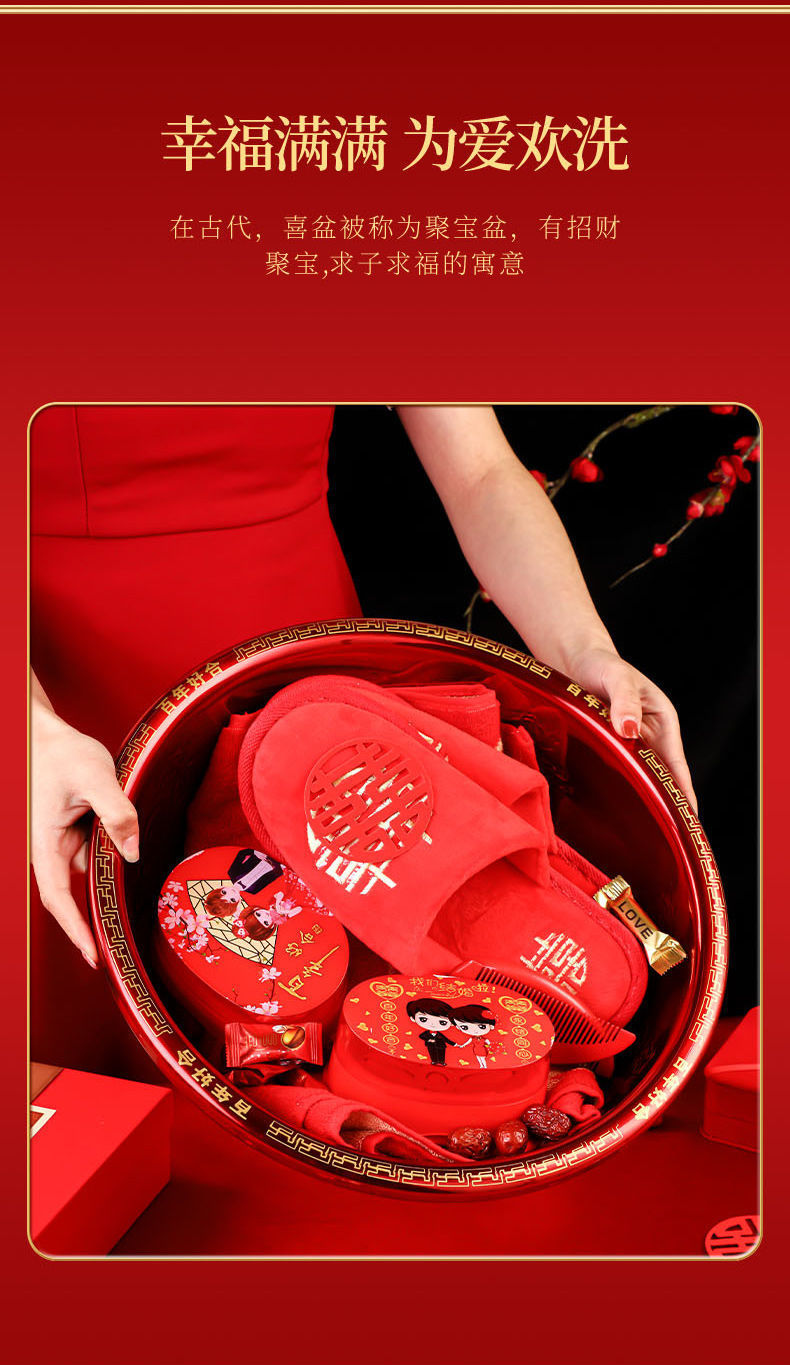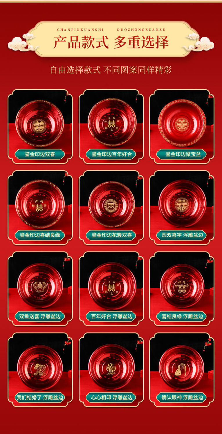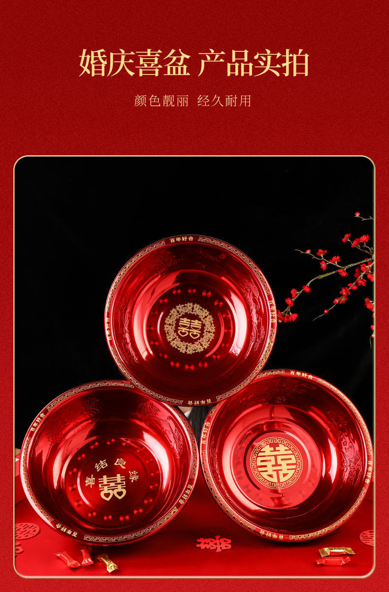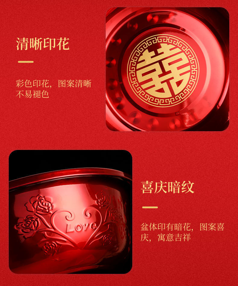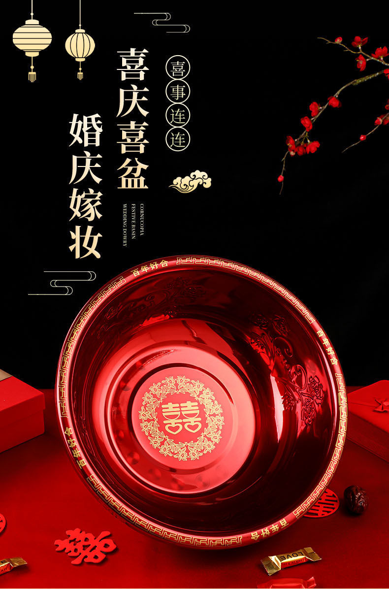 웨딩 분지 두꺼운 스테인레스 스틸 레드 분지 한 쌍의 처녀 지참금 세탁 전체 세트 결혼식 세트 신부 지참금스토어 가기