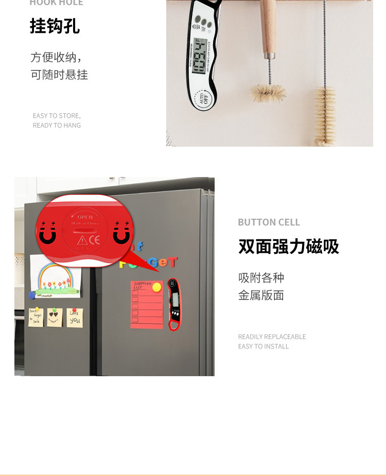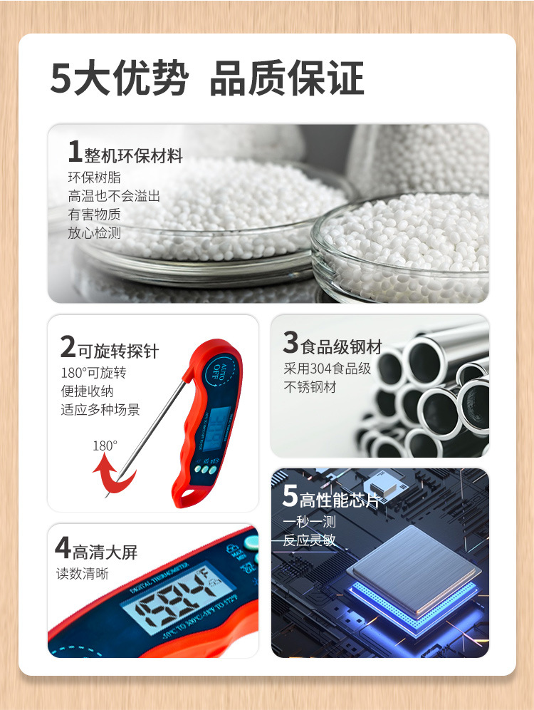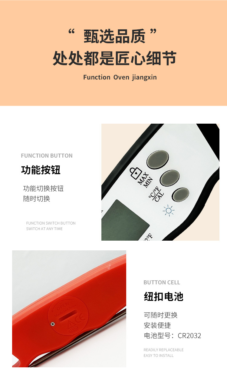국경을 넘는 아마존 접이식 식품 온도계 바베큐 주방 가정용 온도 측정 식품용