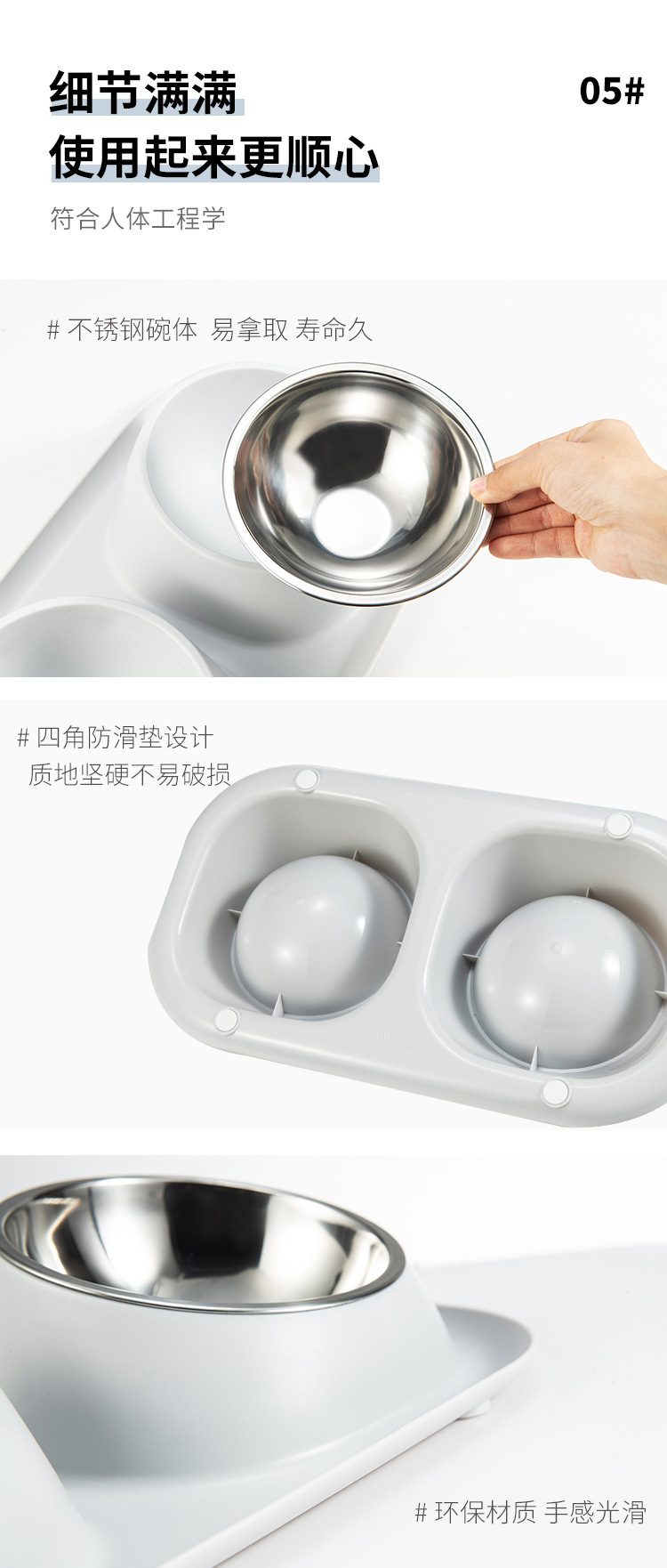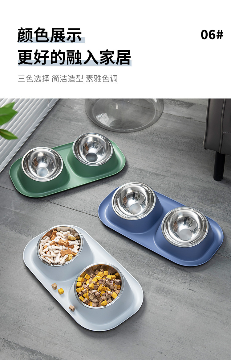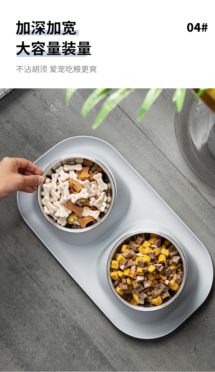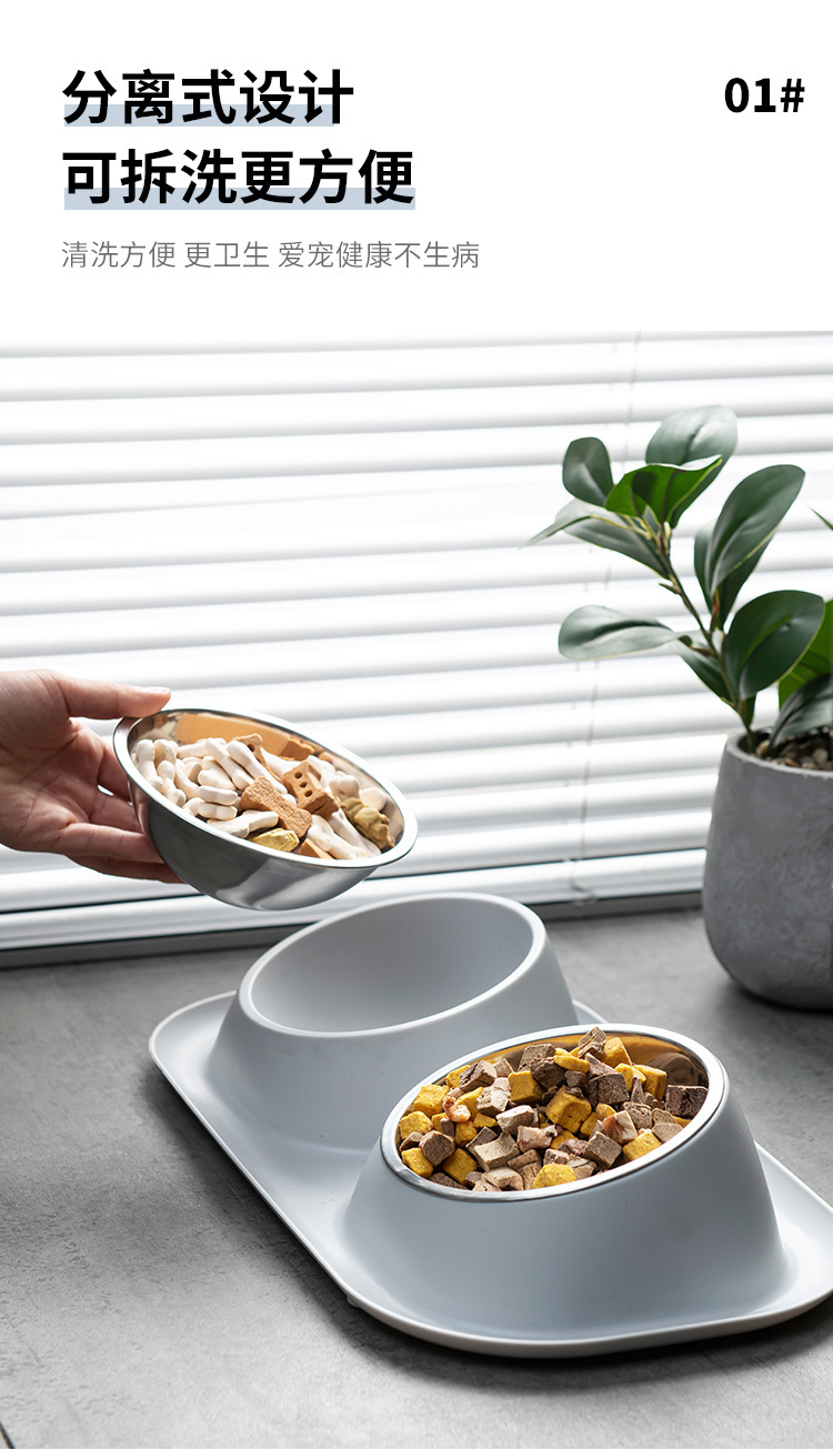 애완견 밥 그릇 안티 노크 스테인레스 스틸 틸트 목 보호 고양이 더블 보울 스플래시 미끄럼 방지 고양이 음식 그릇 개 그릇