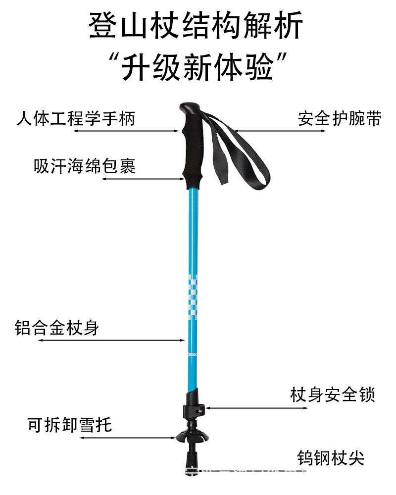 어린이 등산 스틱 미끄럼 방지 전문 야외 등반 장비 하이킹 용품 남성과 여성을위한 개폐식 초경량 목발