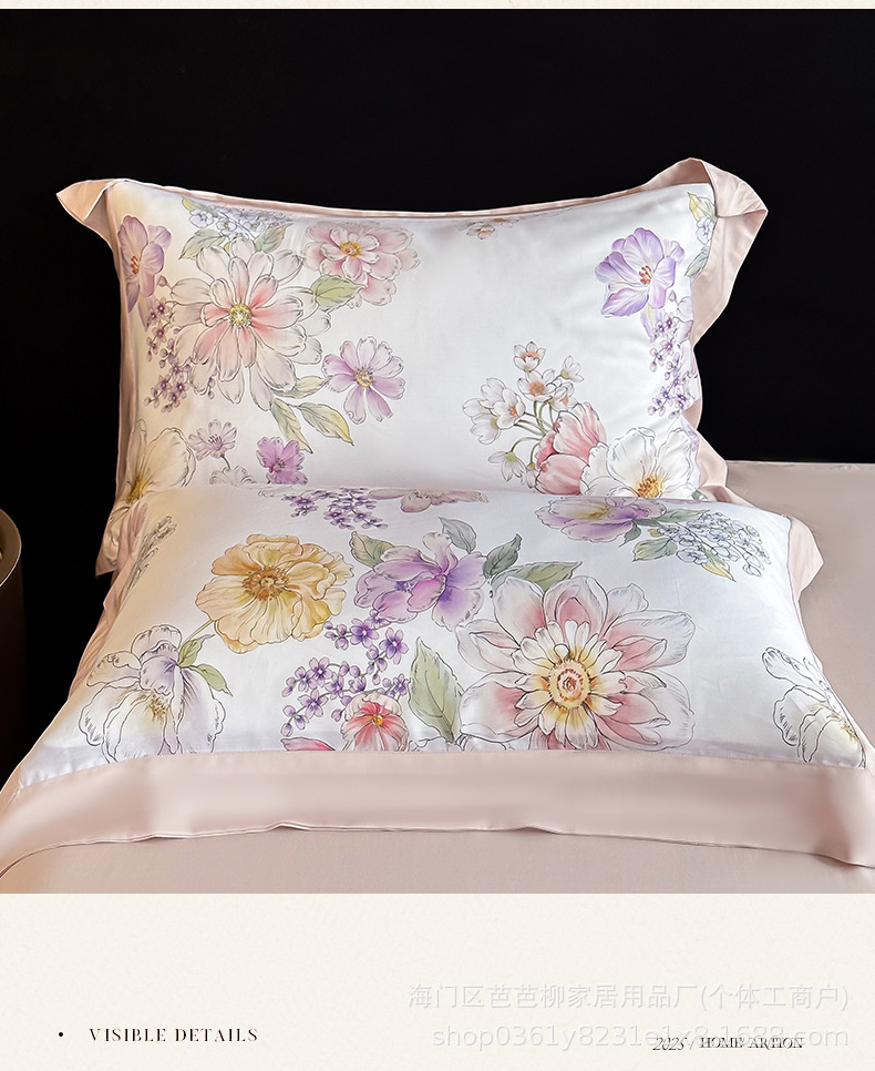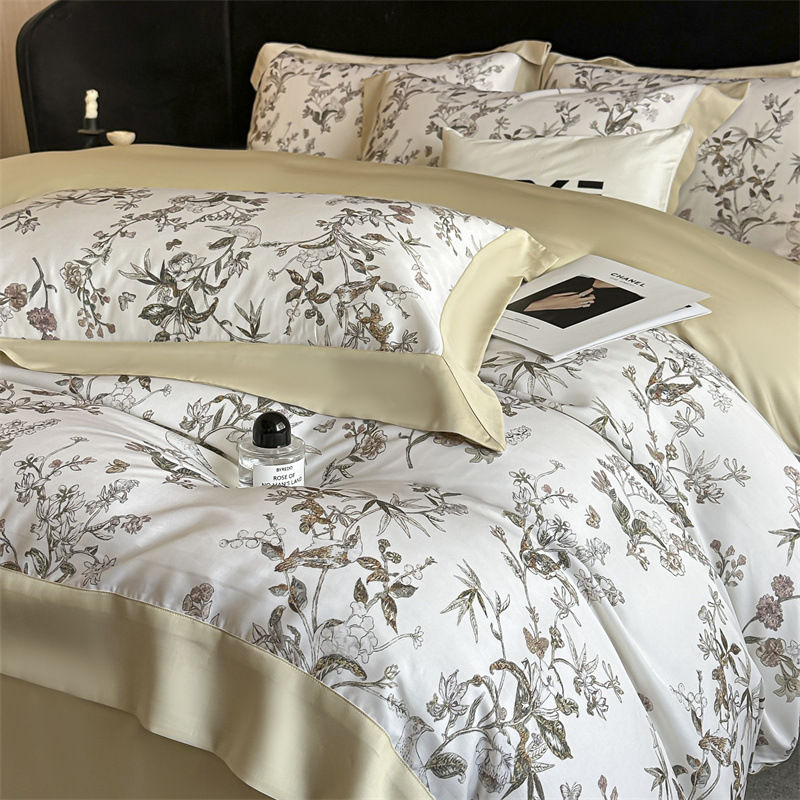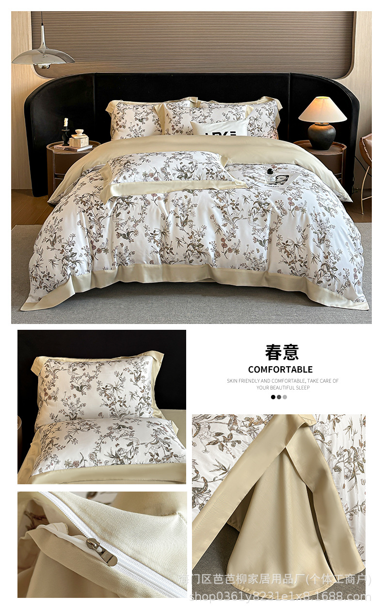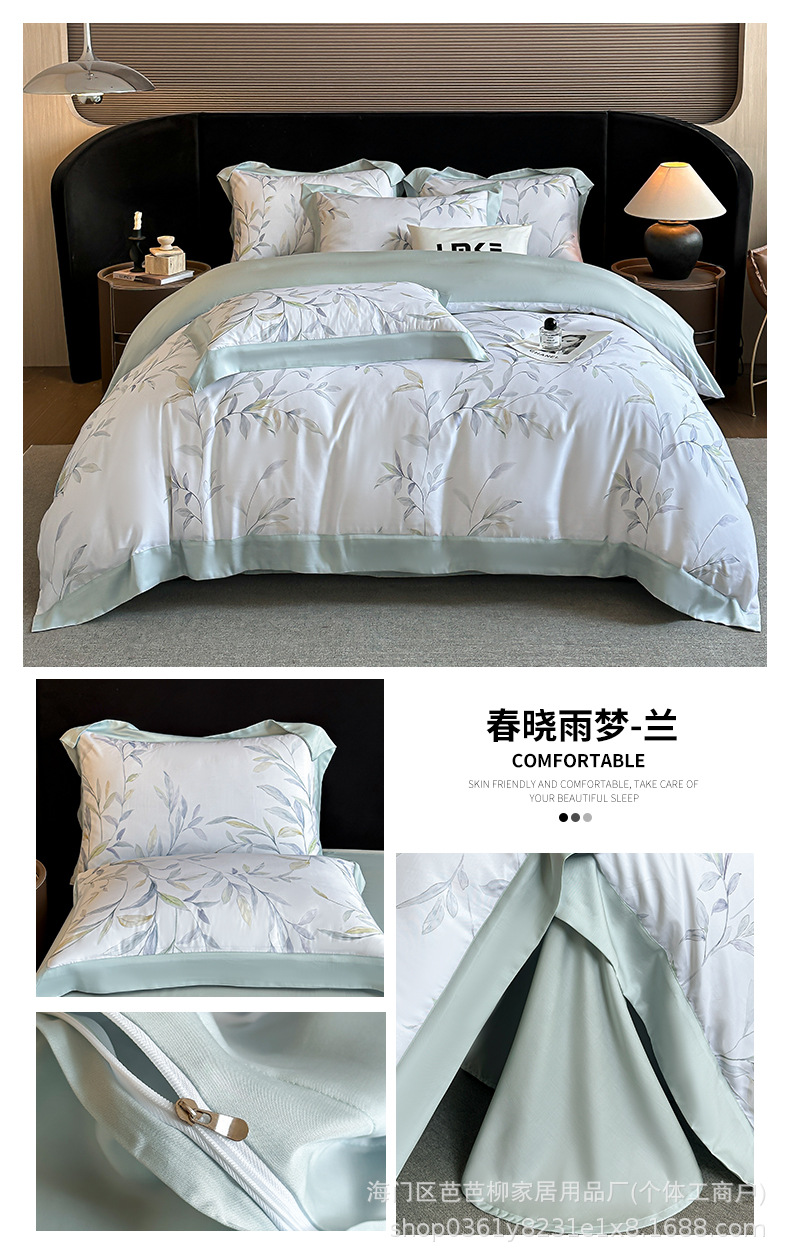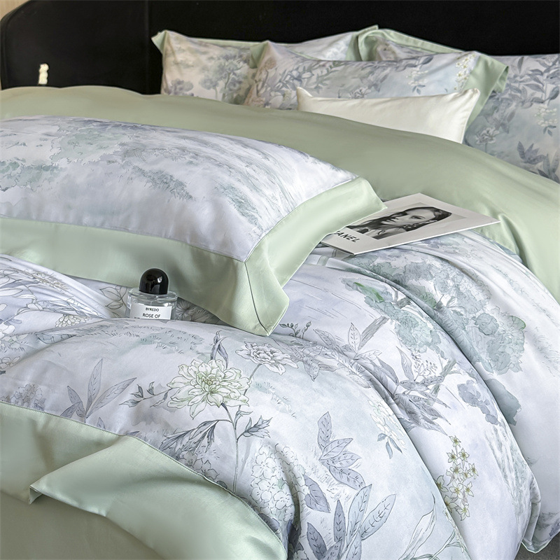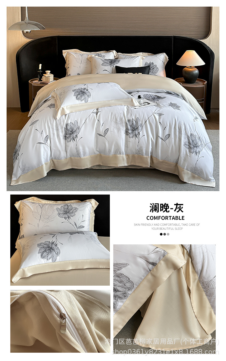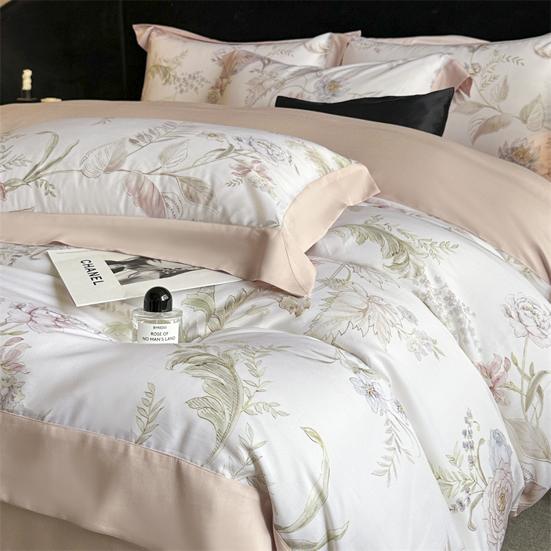 가벼운 럭셔리 프랑스 스타일 50 Lyocell Tencel 4 조각 세트 여름 이불 디지털 인쇄 아이스 실크 쿨 실키 잠자는 벌거 벗은 침구