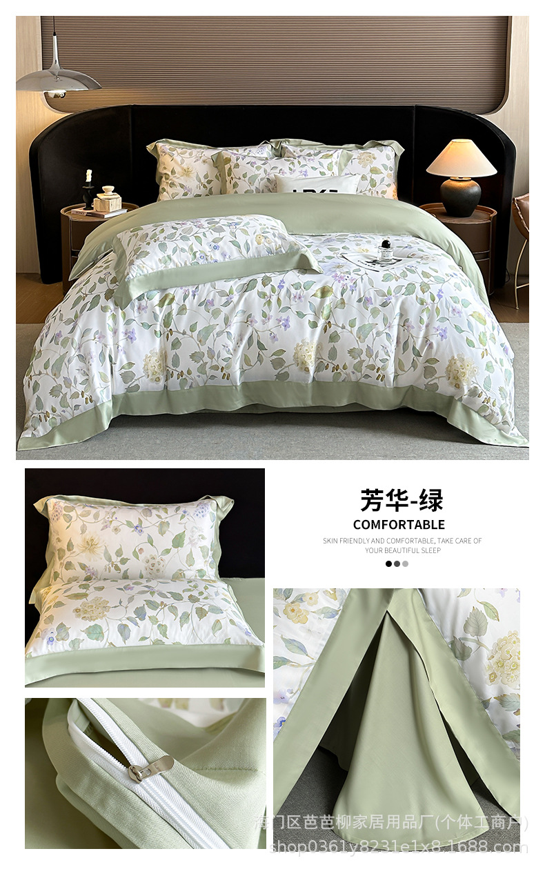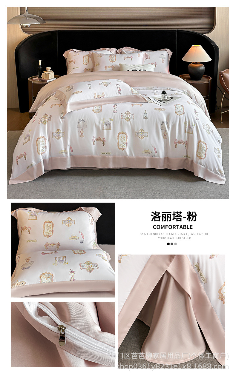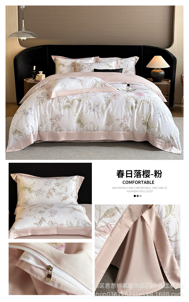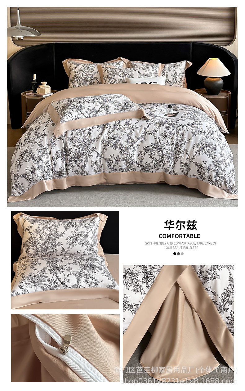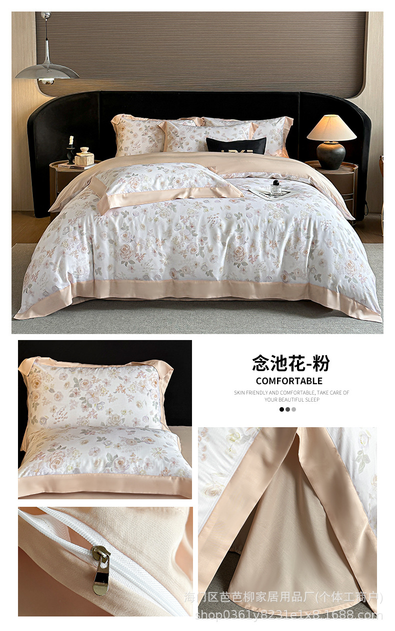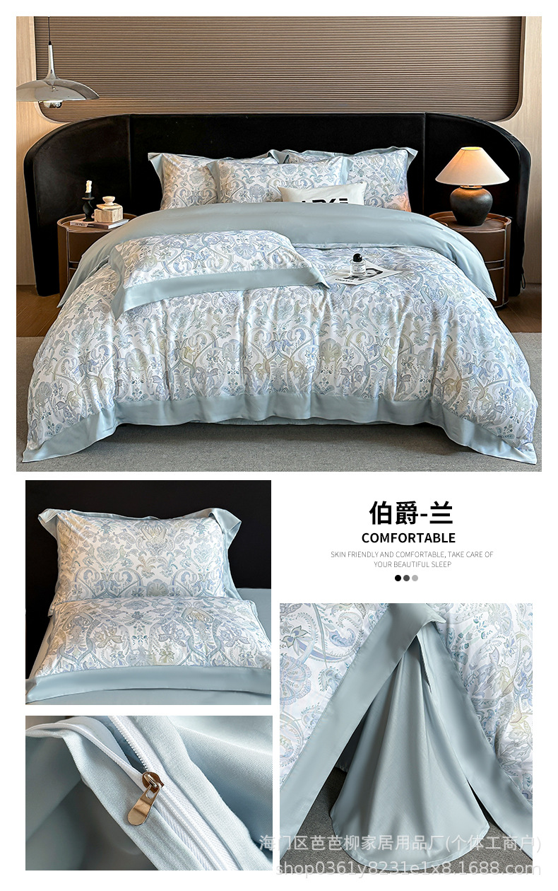 가벼운 럭셔리 프랑스 스타일 50 Lyocell Tencel 4 조각 세트 여름 이불 디지털 인쇄 아이스 실크 쿨 실키 잠자는 벌거 벗은 침구스토어 가기