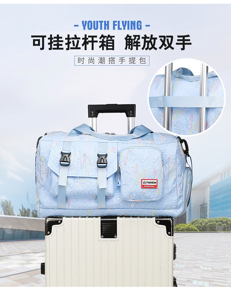 단거리 여행 가방 여성 대용량 경량 소형 신선한 여행 여행 수하물 가방 건조하고 젖은 분리 요가 피트니스 가방