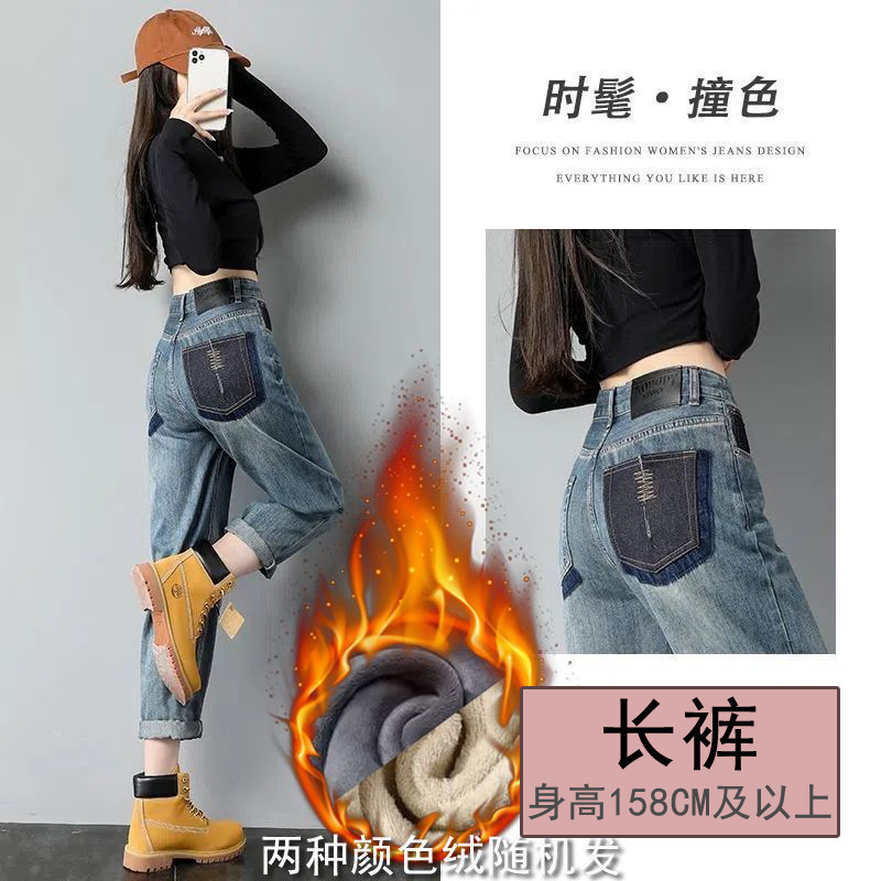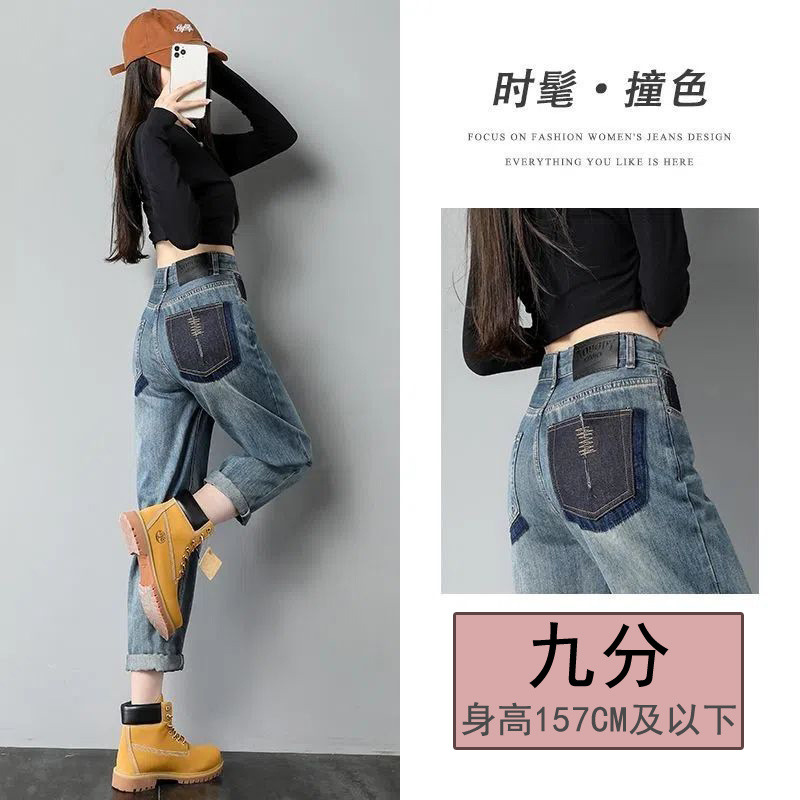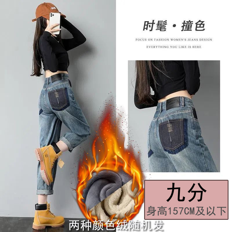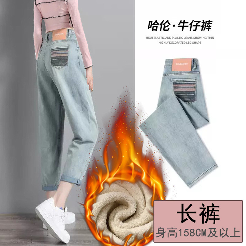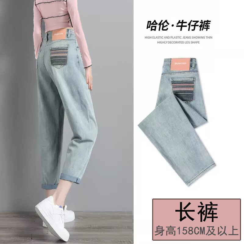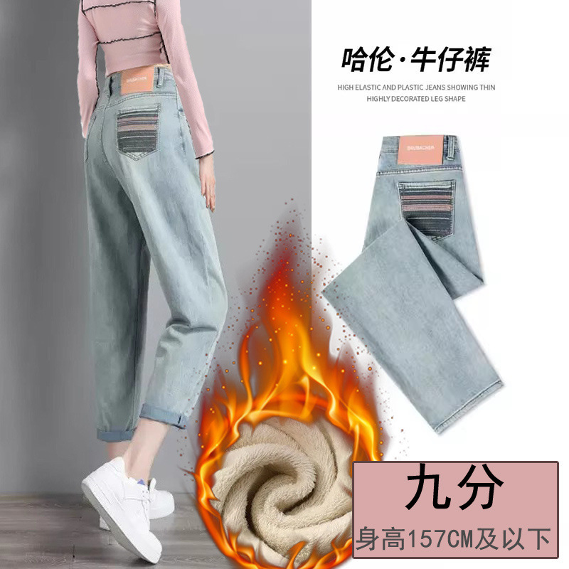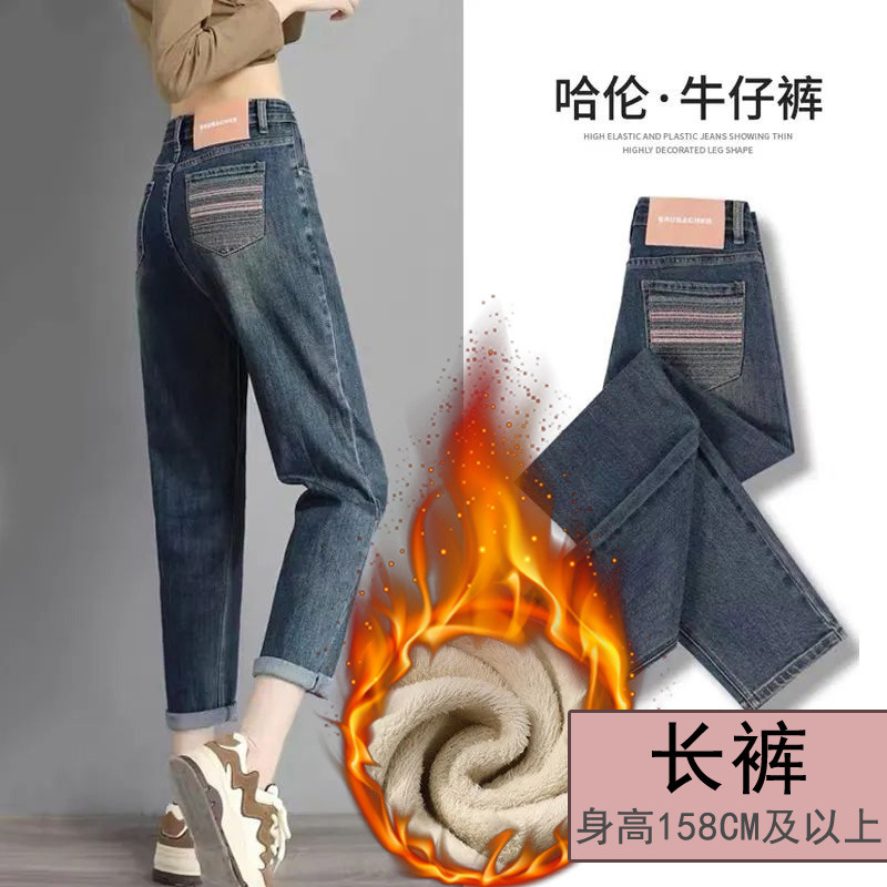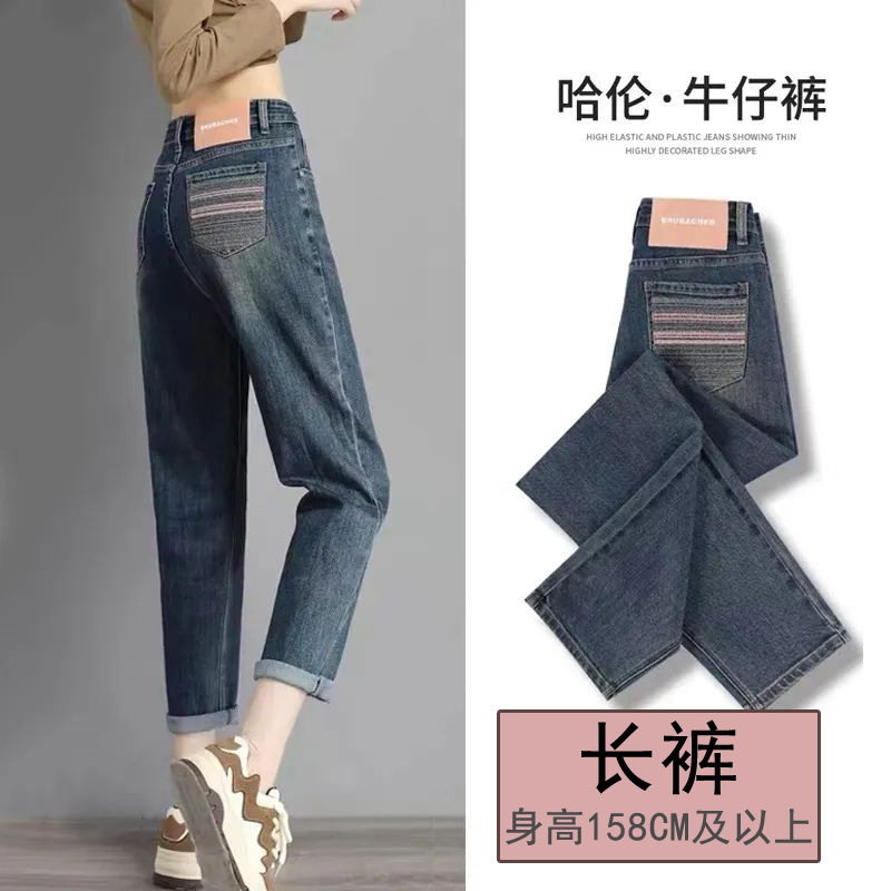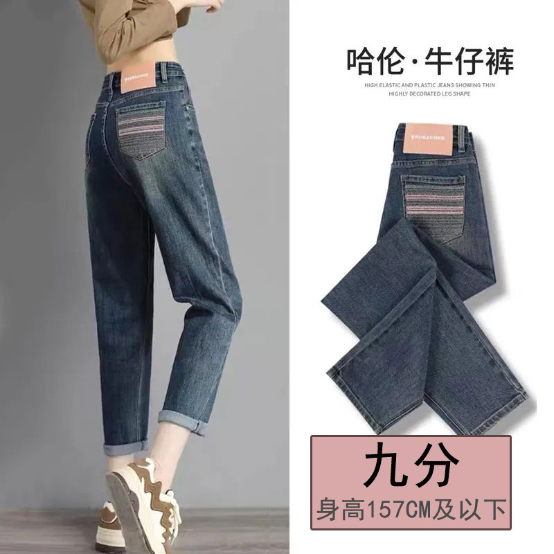 수 놓은 높은 허리 할란 청바지 여성의 봄과 가을 2025 작은 9 점 기모 할란 캐주얼 여성 바지스토어 가기
