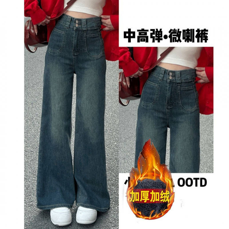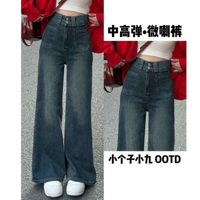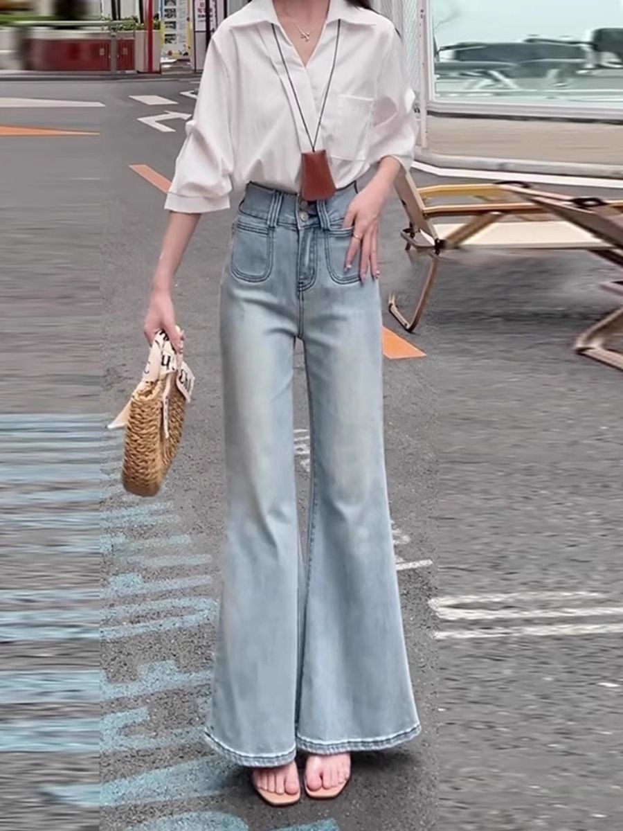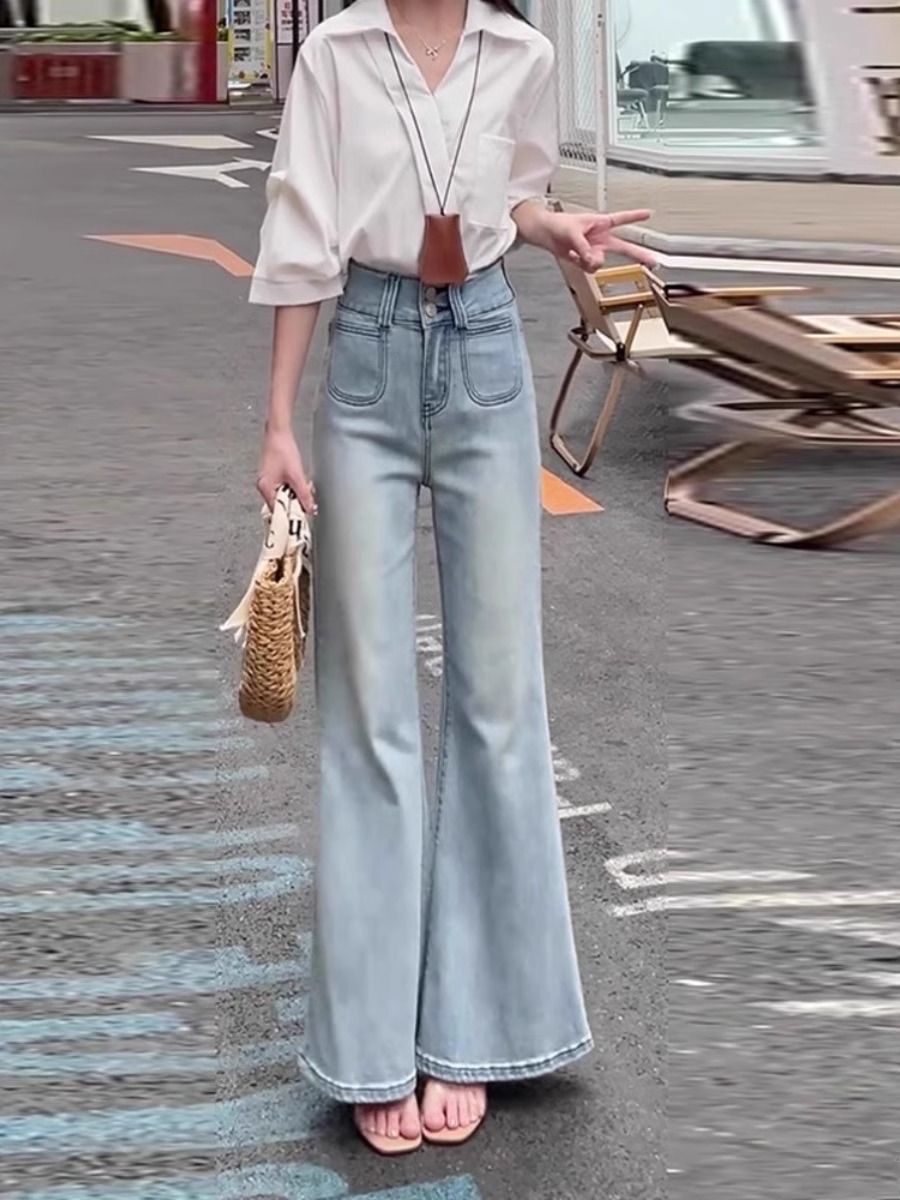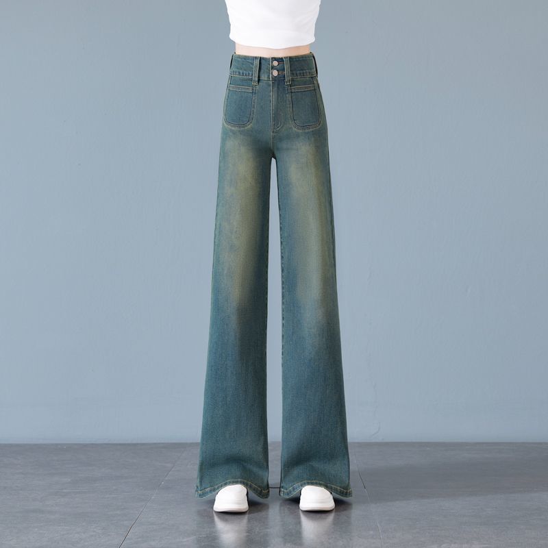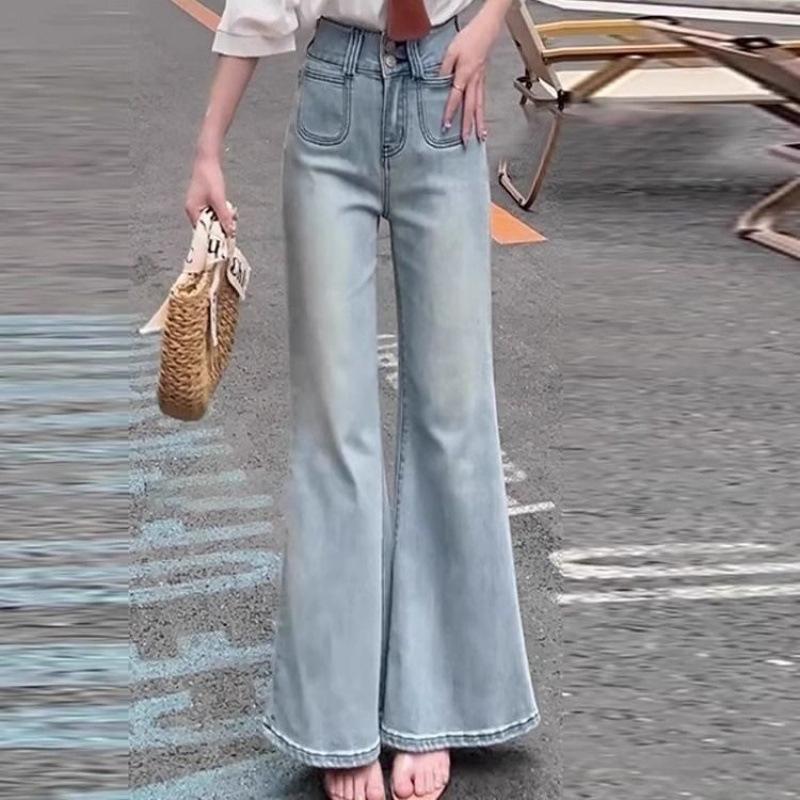 패션 폭발 2025 가을 새로운 라이트 블루 높은 허리 슬리밍 디자인 센스 스트레이트 마이크로 데님 긴 바지스토어 가기