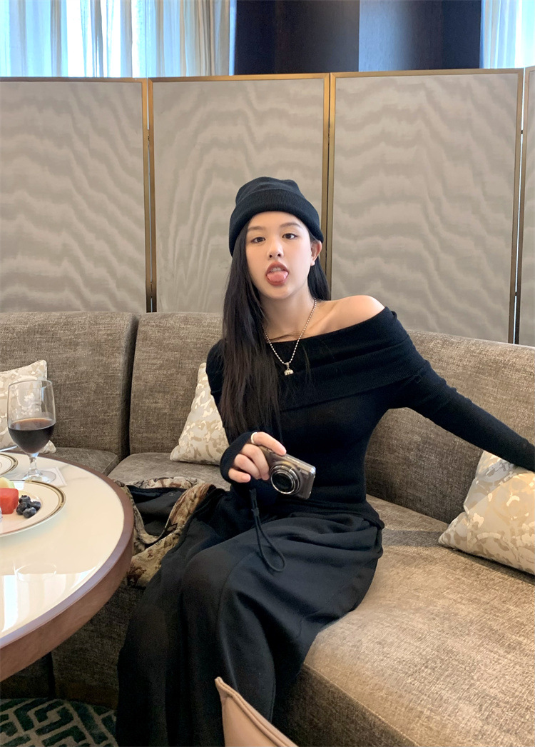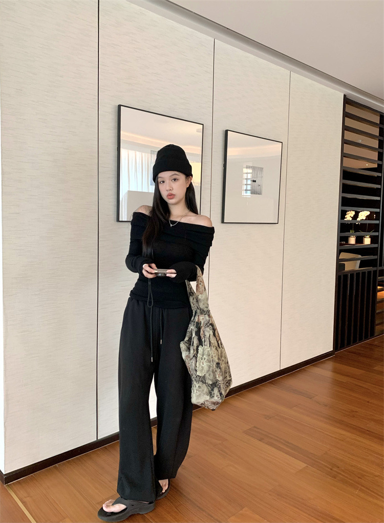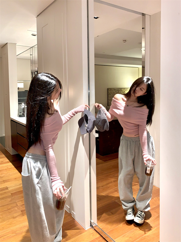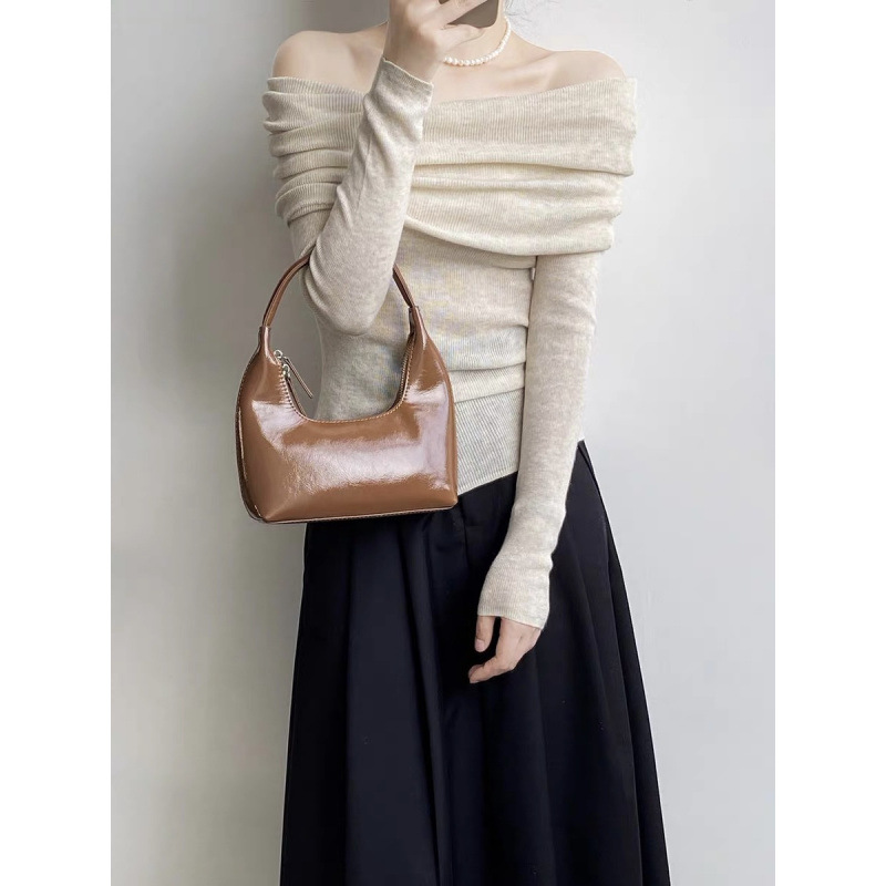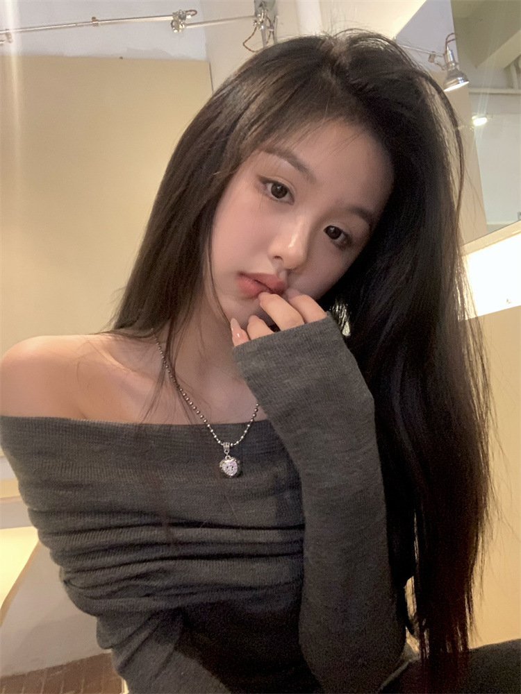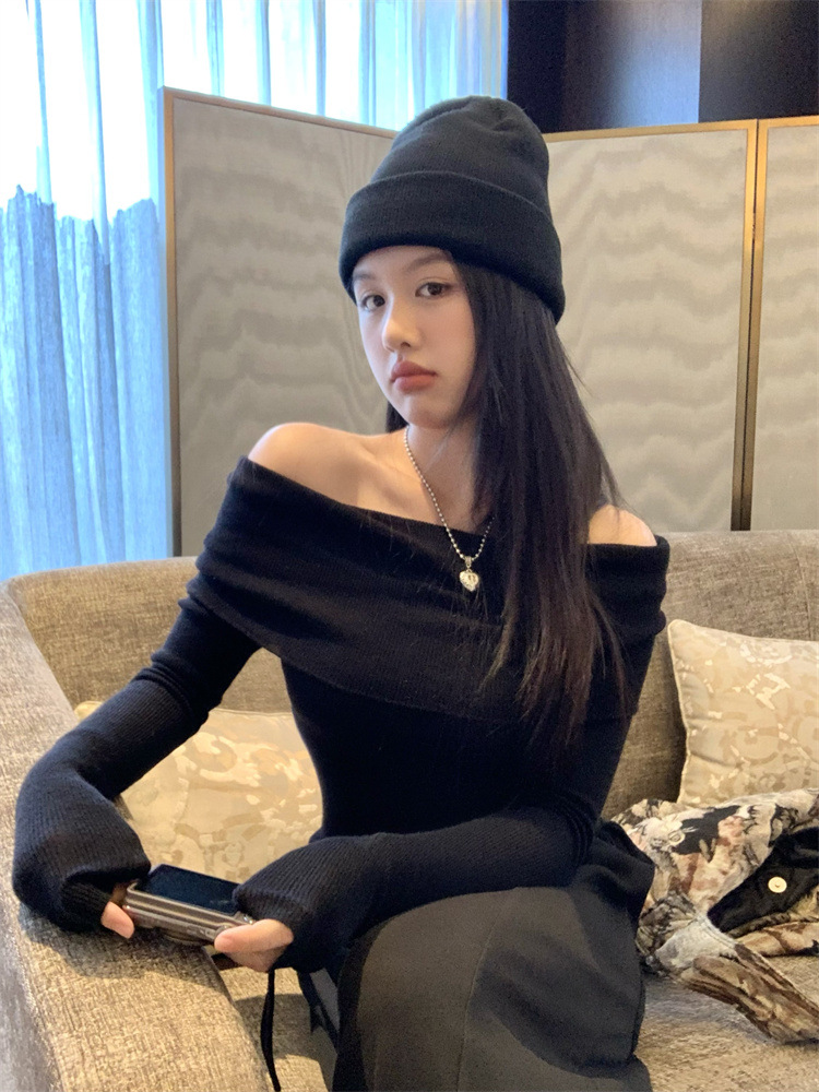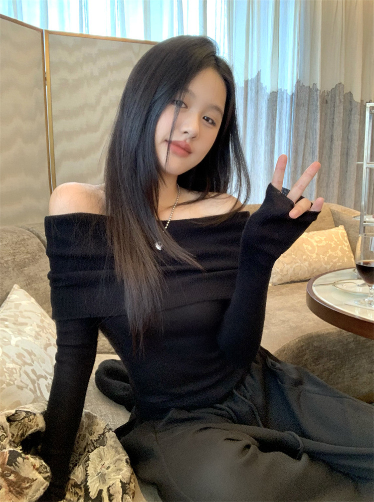 프랑스 세련된 우아한 부드러운 오프 숄더 니트웨어 여성용 스프링 슬림 핏 슬리밍 하이 엔드 플리츠 오프 숄더 탑스토어 가기