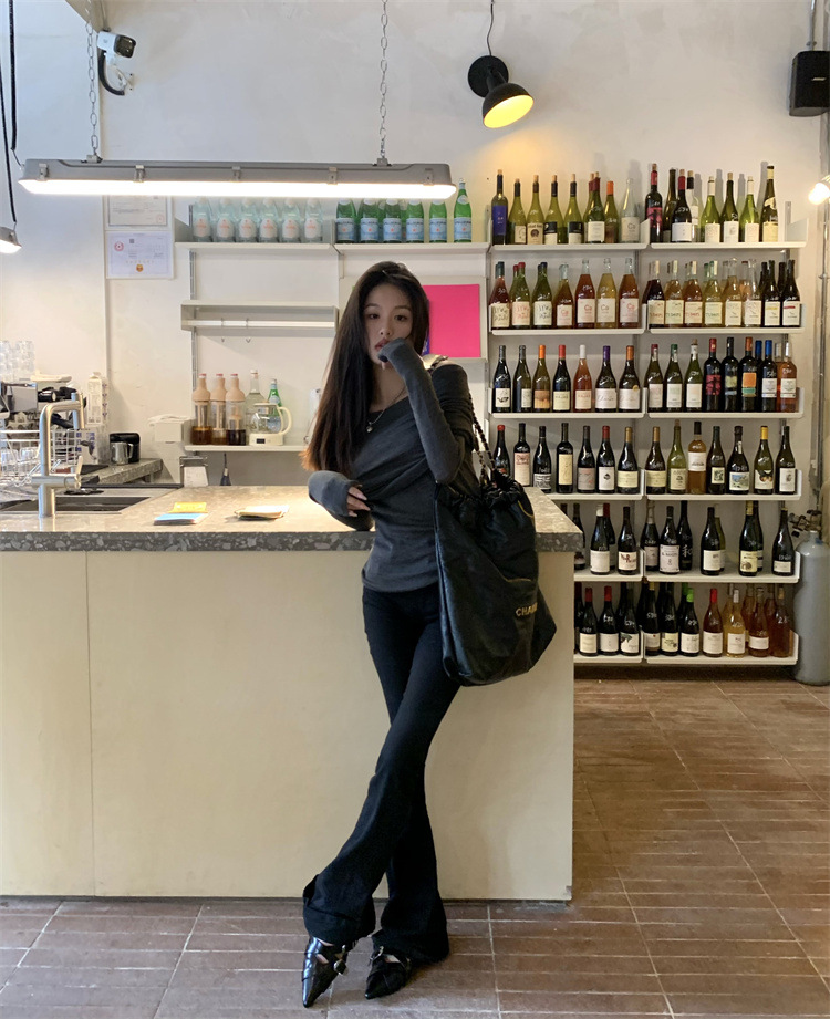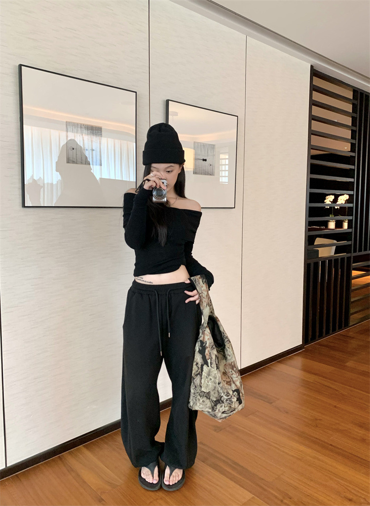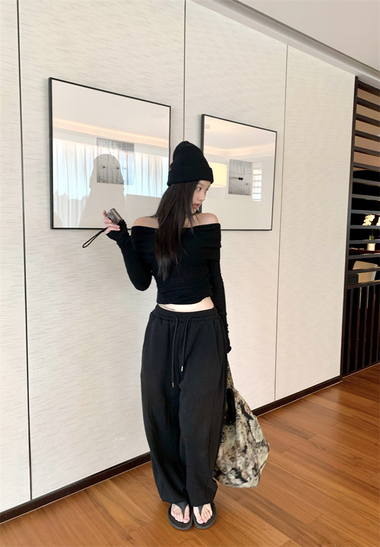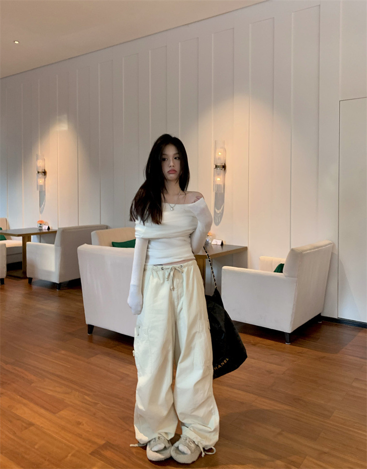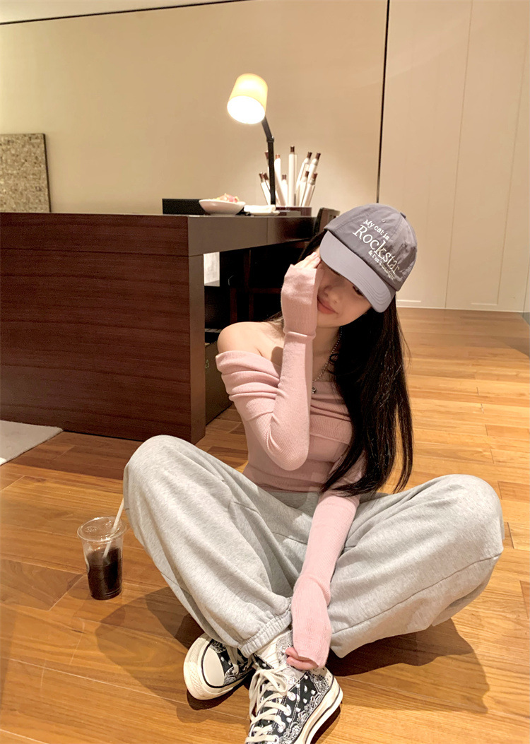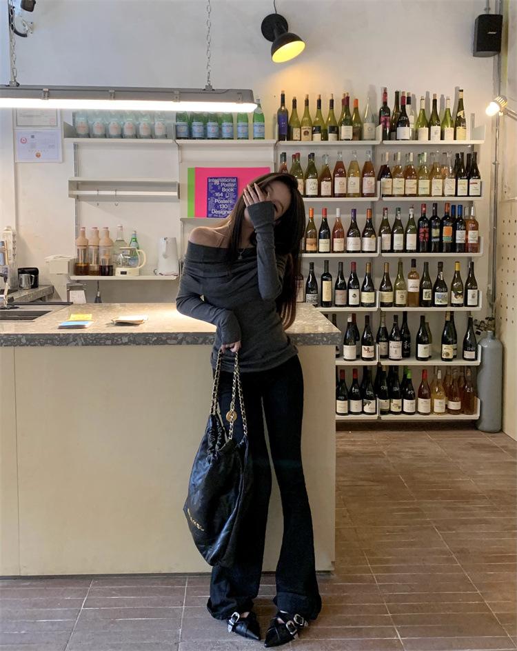 프랑스 세련된 우아한 부드러운 오프 숄더 니트웨어 여성용 스프링 슬림 핏 슬리밍 하이 엔드 플리츠 오프 숄더 탑스토어 가기