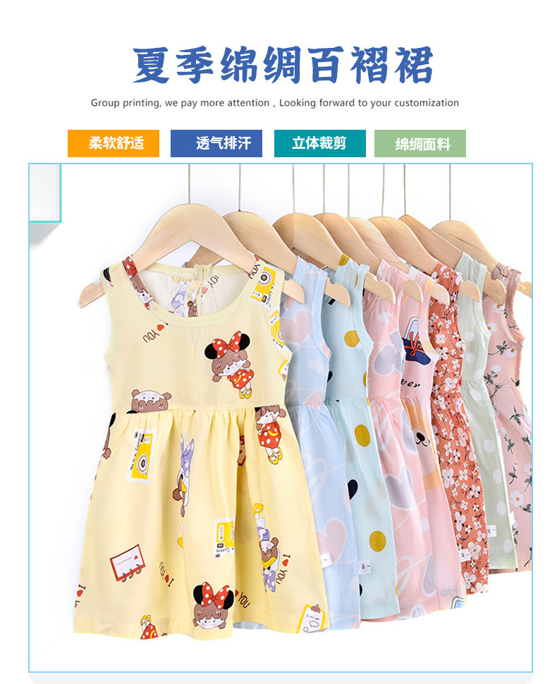 어린이 의류 여름 어린이 치마 소녀 면화 실크 스커트 아기 원피스 공주 스커트 조끼 아기 옷 도매스토어 가기