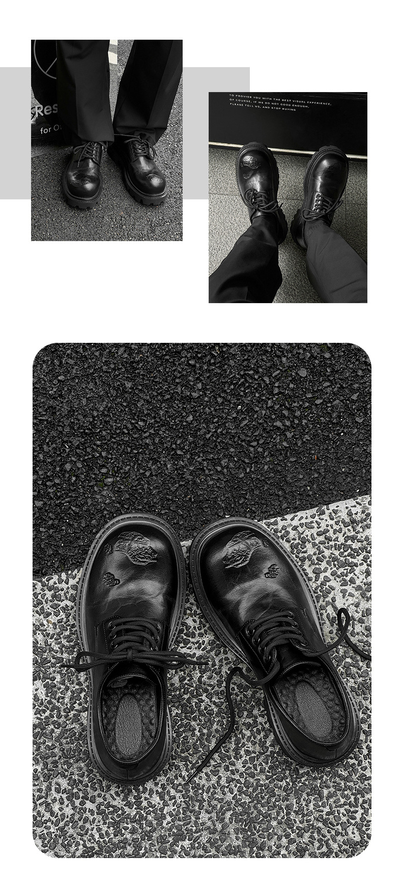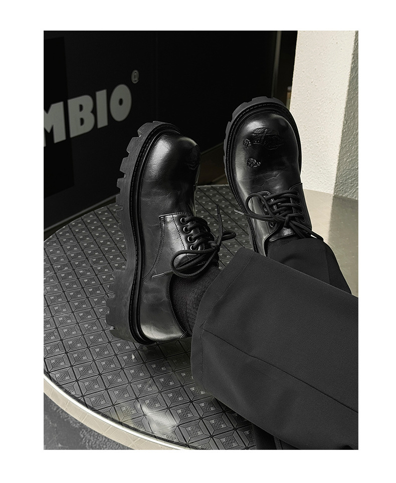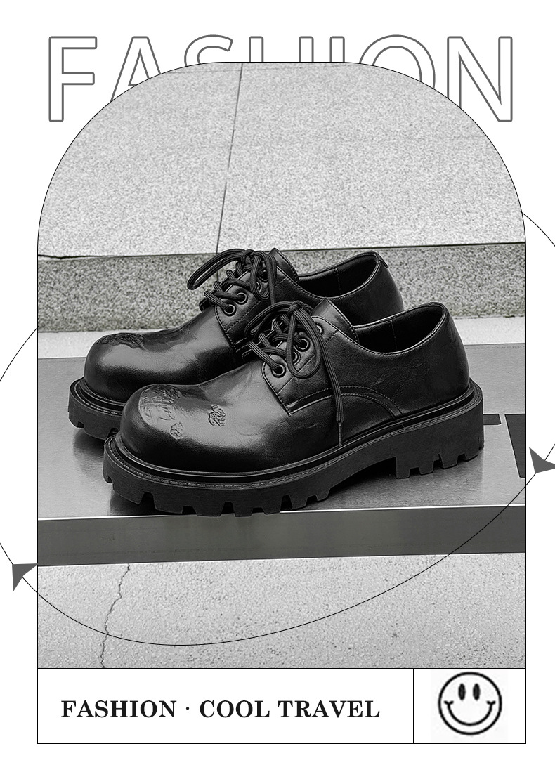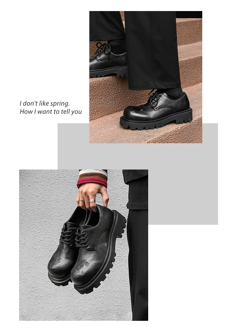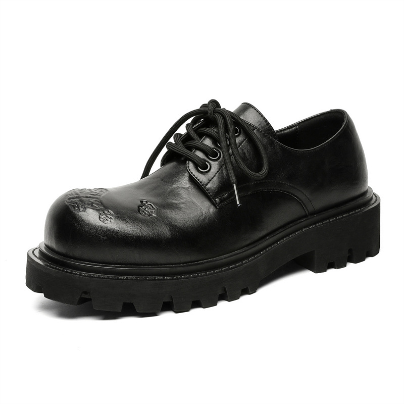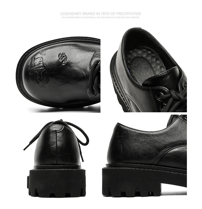 더비 신발 틈새 질감 디자인 라운드 발가락 두꺼운 단독 높이 증가 남성 신발 영국 스타일 복고풍 도구 신발 큰 발가락 작은 가죽 신발스토어 가기